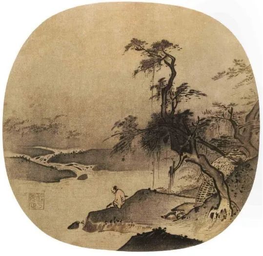 南宋夏圭绘《临流抚琴图》