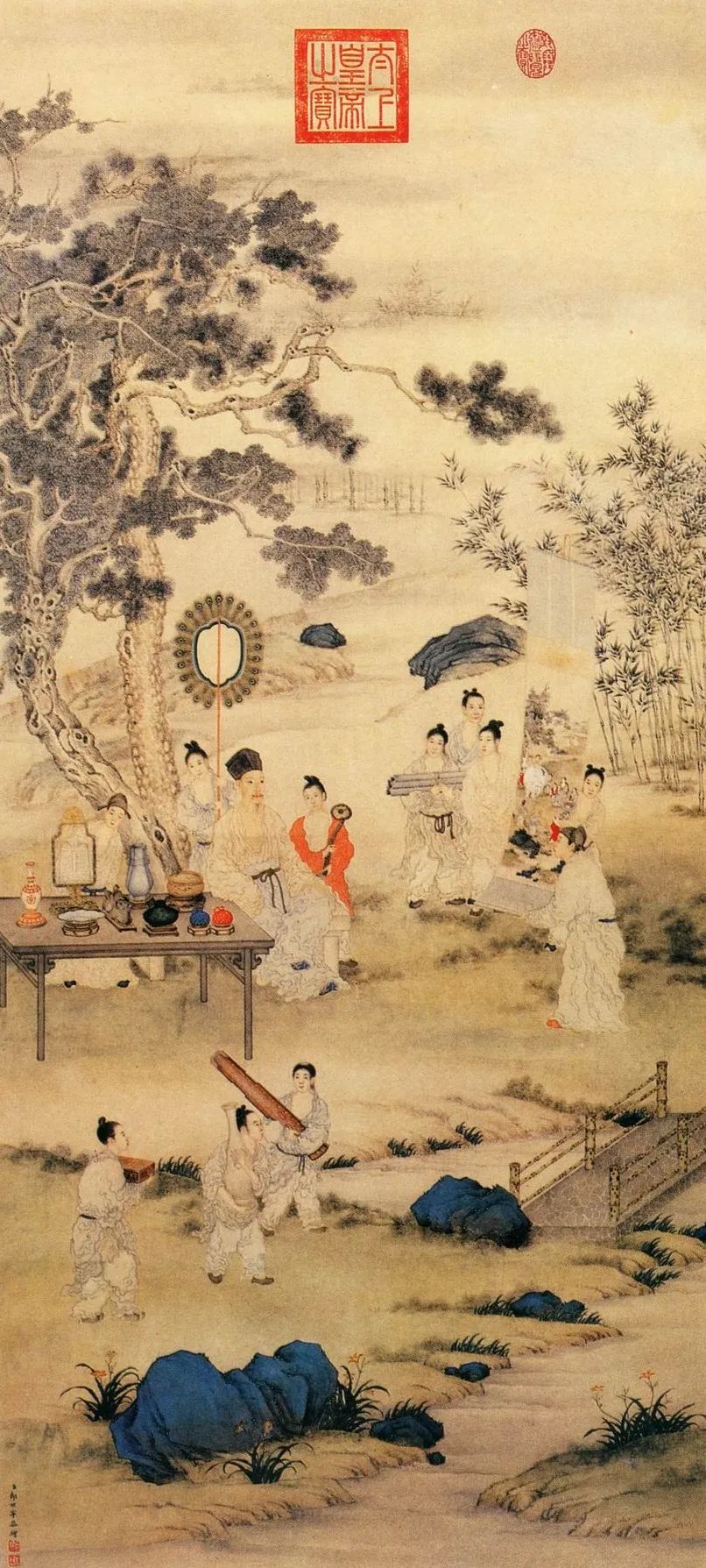 清代风行者绘《雍正行乐图·竹溪抚琴》