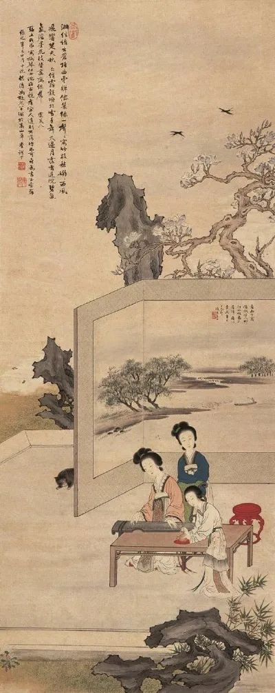 清代郎世宁绘《弘历观画图》