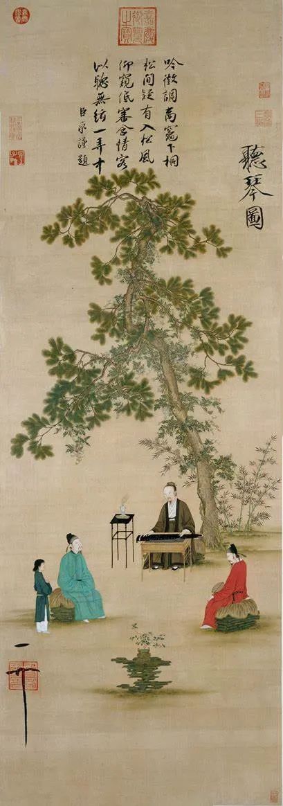 清代雍正皇帝有十六雅事,第十二件便是“对月鸣琴”。所谓“士无故不彻琴瑟”,古琴是古代文人的时尚单品。对古琴,文人不仅在音色和指法上有特别细腻的要求,而且对弹琴的环境十分讲究。文人操缦,悠久传统,亦为道家天人合一思想在琴道上的反映,且与中国园林等艺术的审美追求和谐相通,历代诗文、书画中亦充满了琴人、琴音与自然的互动。