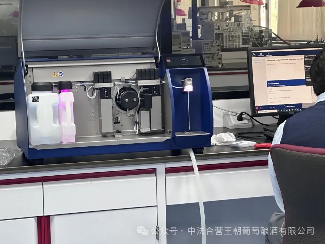 王朝公司高度重视食品安全工作,为提升质检中心综合检测水平,引进最新型号的WineScanTM3型FOSS葡萄酒快速分析仪,是国内第一家引进该型号检测设备的葡萄酒企业。