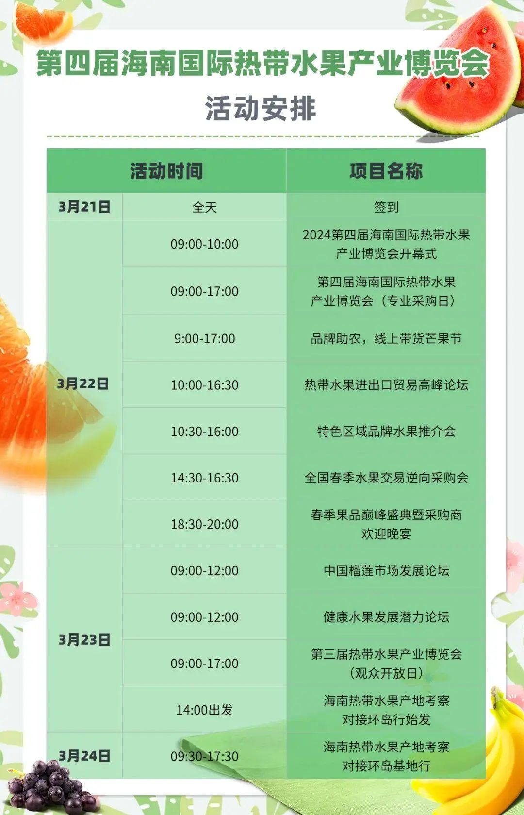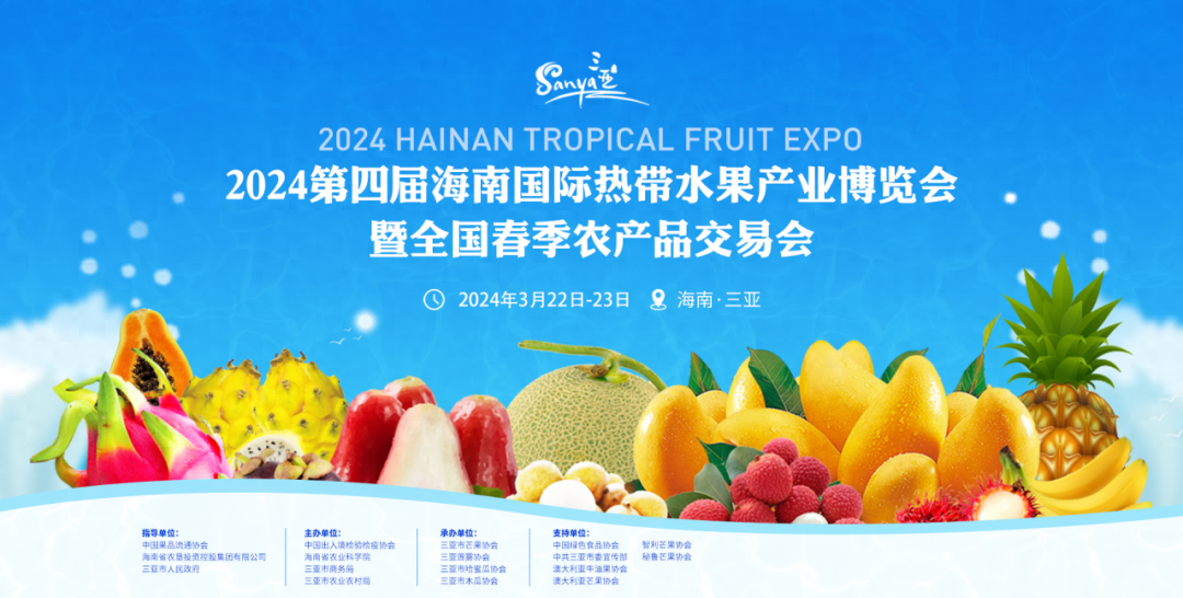 3月22日至23日,2024第四届海南国际热带水果产业博览会暨春季农产品交易会(简称“2024热博会”)将在三亚天涯海角红树林国际会展中心举办。