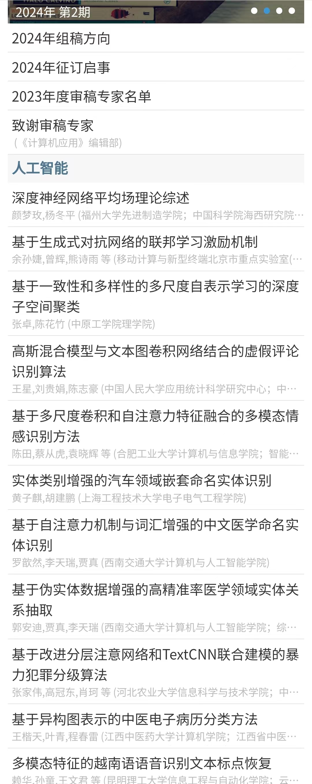 简介:《计算机应用》创刊于1981年,是中国计算机学会会刊。以介绍计算机应用技术为重点,以推动经济发展和科技进步为宗旨,以促进计算机开发应用创新为目标。主要栏目:人工智能、数据科学与技术、网络空间安全、先进计算、网络与通信、计算机软件技术、多媒体计算与计算机仿真、前沿与综合应用。