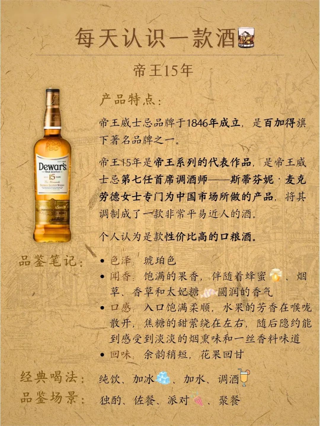 帝王15年威士忌以其独特的风味和广泛的适用场合,成为了威士忌市场上的一款佳作。无论是威士忌新手还是资深爱好者,都能在这款酒中找到属于自己的乐趣。