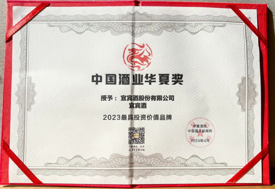 2023年4月,宜宾酒三款产品在华夏奖颁奖典礼上获得“最具成长价值品牌、”“最具创新价值品牌”、“最具投资价值品牌”三项殊荣。11月,宜宾酒入选“一带一路十周年.国礼品牌。同月成为“天府地标”集体商标首批用标企业。