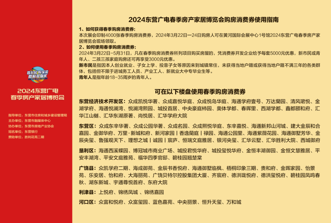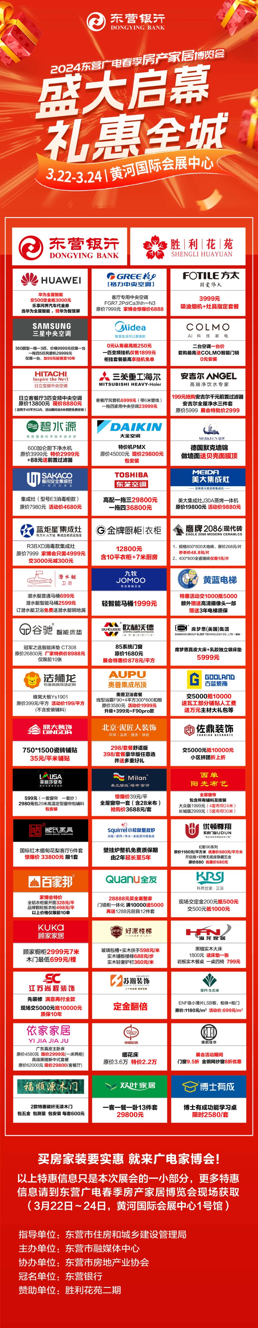 本届广电家博会由东营市住房和城乡建设管理局全程指导,东营市融媒体中心主办,东营市房地产业协会协办。由东营银行总冠名、胜利花苑二期赞助支持。