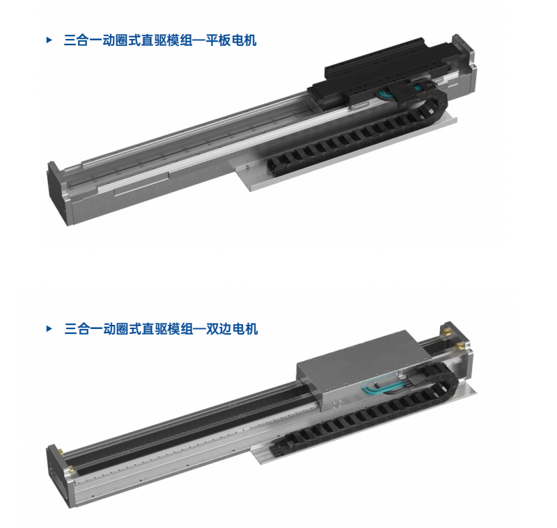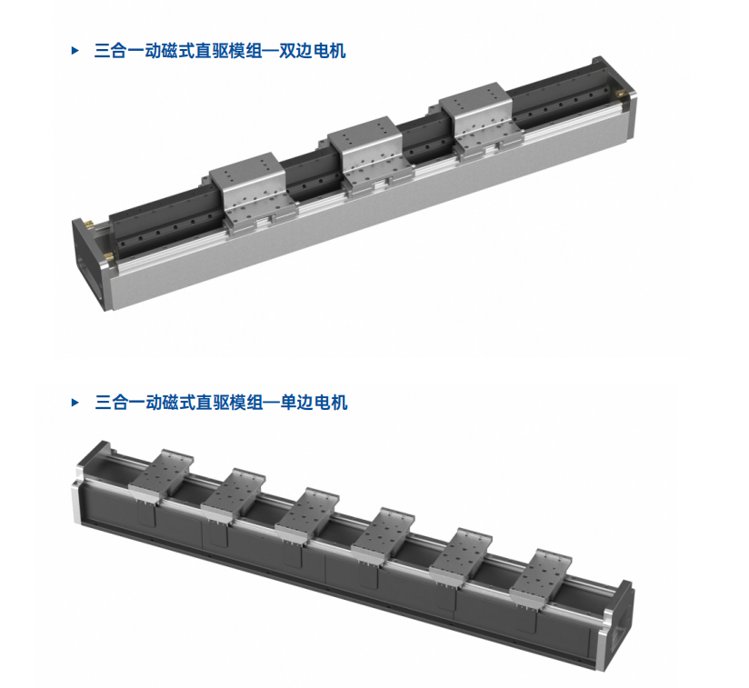 此外,凌动三合一直驱模组提供动圈式和动磁式两种形态,以满足不同场景的应用需求。动磁式直驱模组在动子无源、无拖链及繁杂线束方面表现出色,实现实时绝对位置检测与独立运动控制,在多动子运动场景中展现出卓越性能。