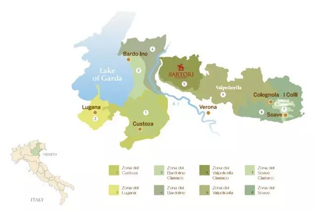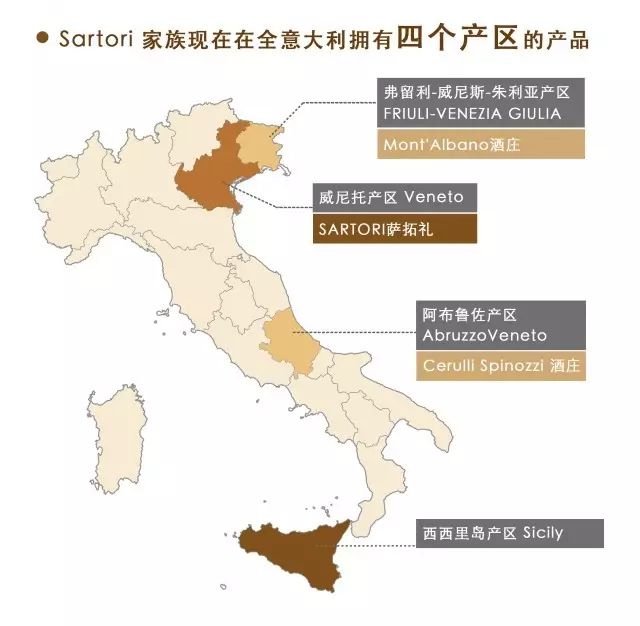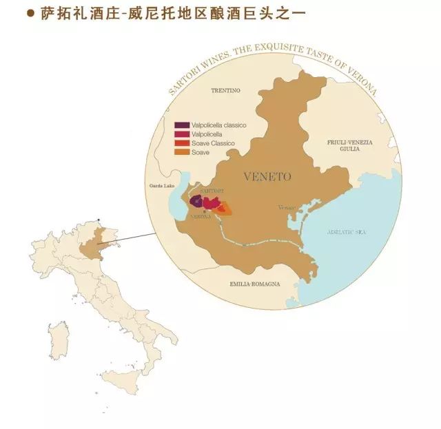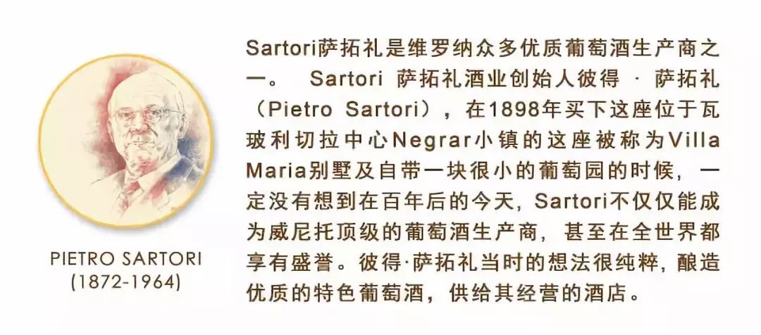 Sartori 萨拓礼酒庄,拥有维罗纳地区三个最著名、最传统的葡萄酒产区:瓦尔波利切拉, 巴多利诺和索阿维。