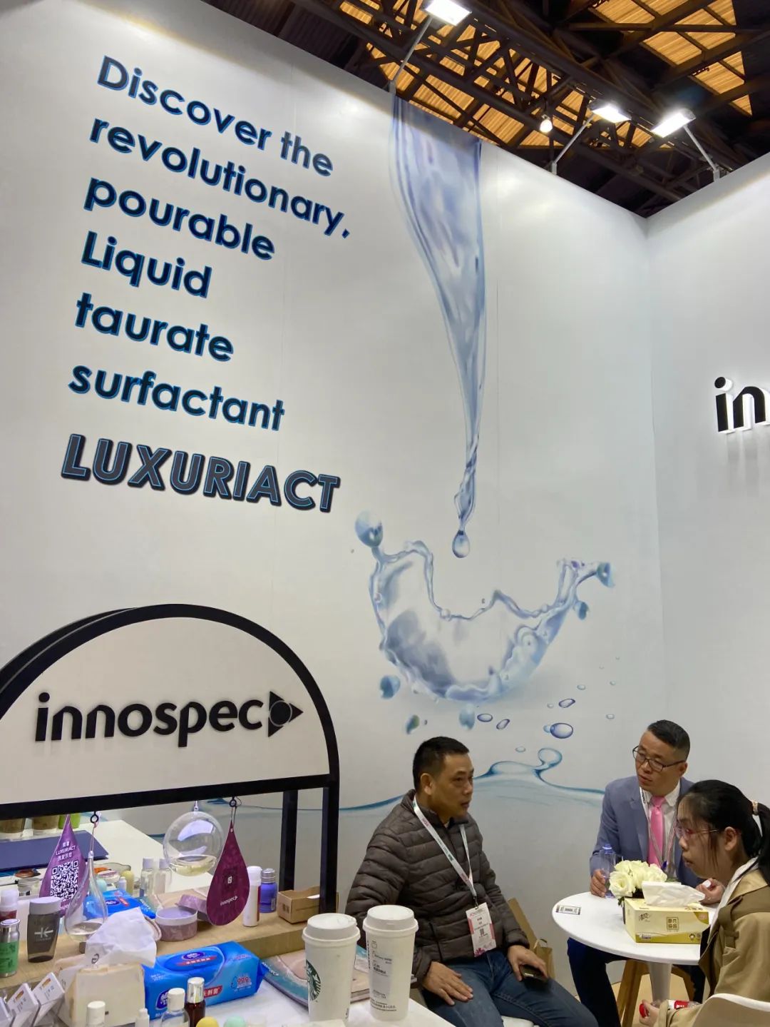 我们展示了我们独家冷工艺牛磺酸盐 Luxuriact。它是液体的甲基椰油基牛磺酸钠 ,在常温/低温流动性非常好,方便生产操作。另外,因为无盐的特点,有利于透明的和对盐敏感的配方,也有利于染色头发的护理。