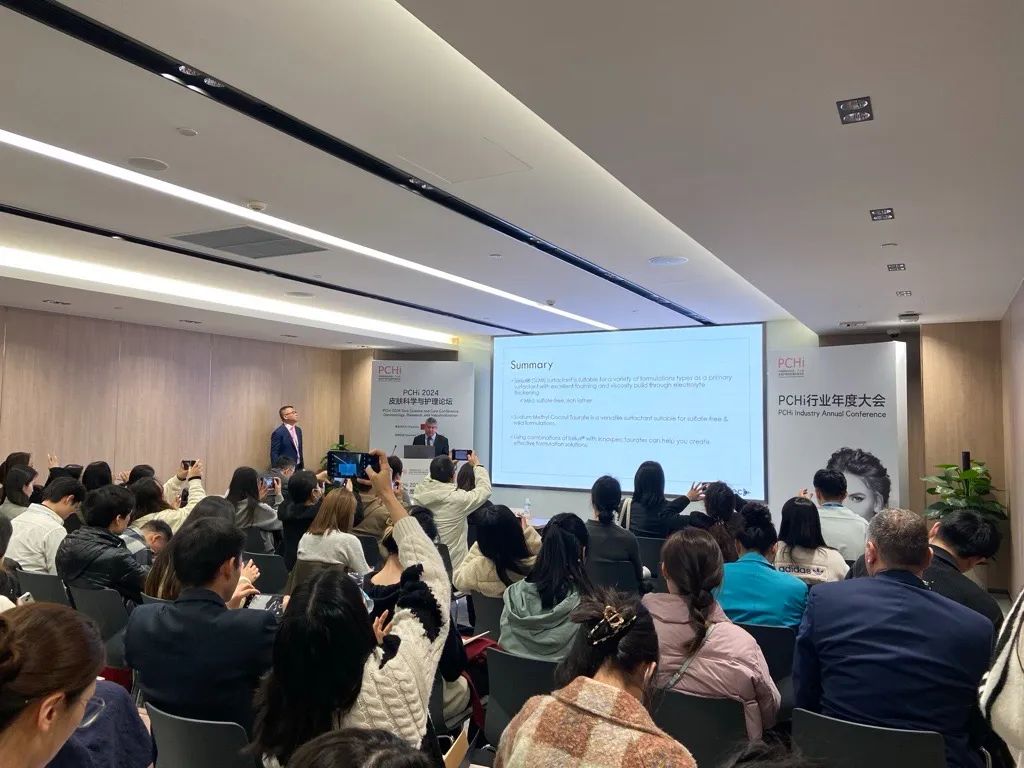 今年我们也邀请了 Tony Gough 博士在展会的皮肤科学与护理论坛中进行 “配制高性能、无硫酸盐的个人护理洗洁产品”的演讲。论坛会议的观众响应热烈。