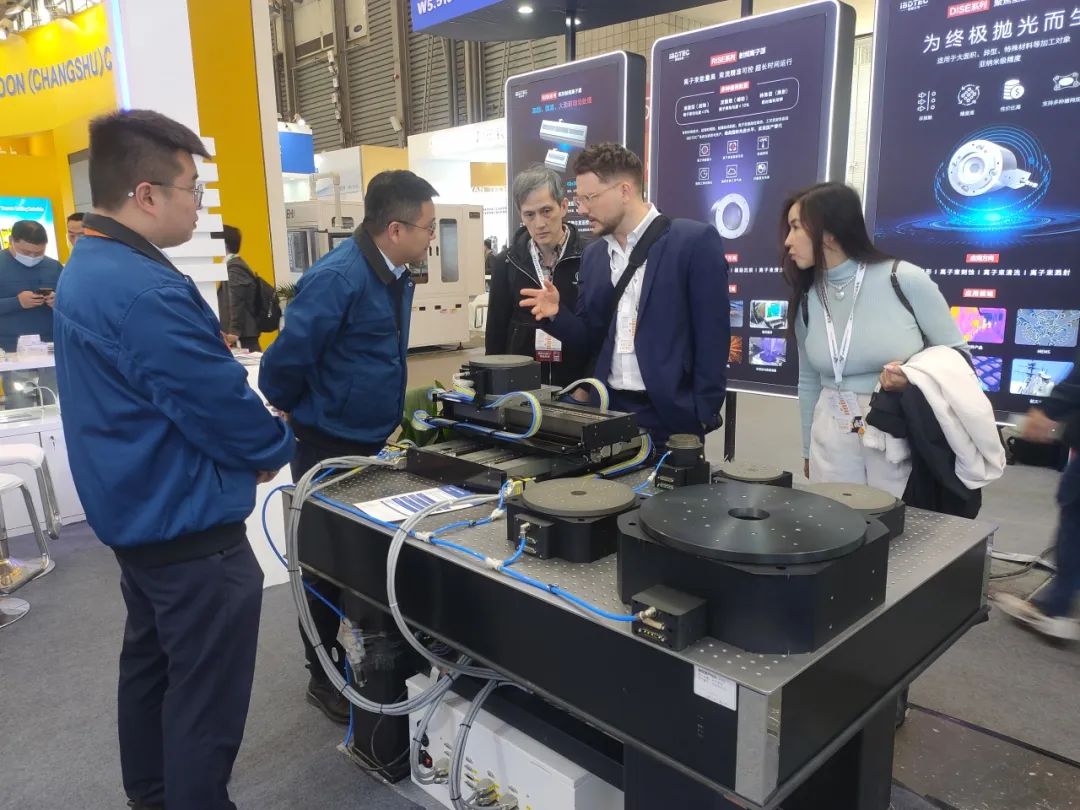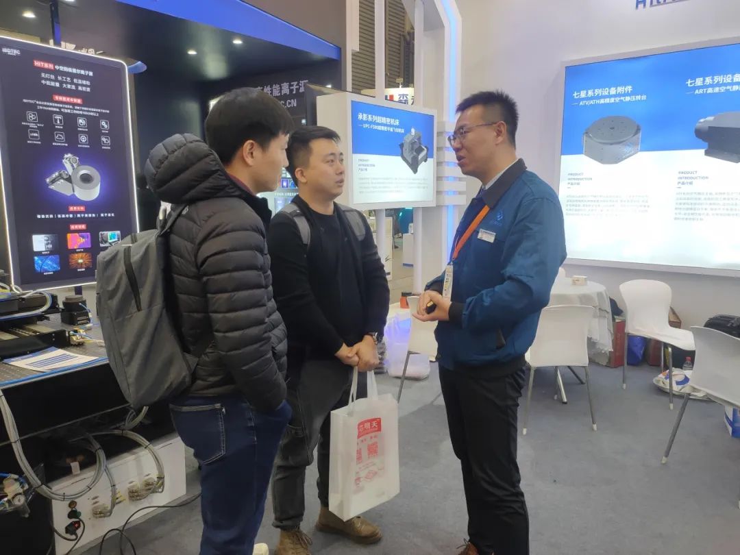 展会现场,公司携带自主研发生产的设备惊艳亮相。超精密单点金刚石车床、高精度空气静压转台、高精度空气静压导轨等产品,吸引了众多观展嘉宾的关注。