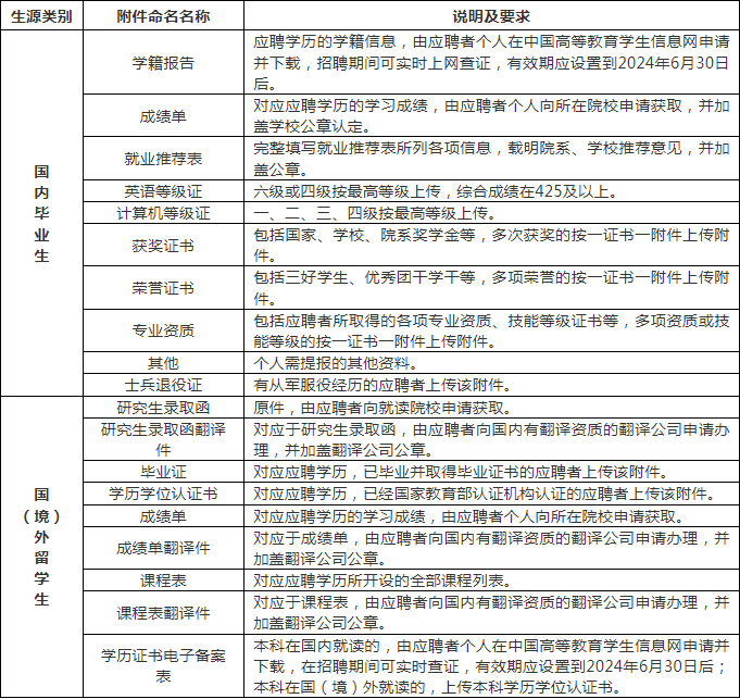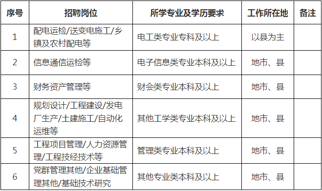 根据要求如实填写个人简历,上传附件,并申报应聘单位。本批次报名时间截止2024年3月31日。所有附件均应按一文件一附件上传,多文件可多附件,并按所列名称规范命名,具体要求如下:2.资格审查。我公司对应聘毕业生进行简历筛选,按志愿择优选拔应试毕业生人选,经现场资格审查合格后办理统一笔试准考证。凡第一志愿应聘我公司的毕业生,同等条件下优先选拔。附件上传、信息填报不完整的将影响简历筛选。未填写学籍验证码(在用户登录->学籍认证中填写)、未上传学籍报告、专业及学历等信息与学籍报告不一致的,无法通过简历筛选。3.笔试和面试。所有通过资格审查的应聘毕业生需参加国家电网有限公司组织的统一笔试。拟录用毕业生均需全部通过统一面试。考试通知以招聘平台站内消息方式予以送达(个人中心可查),并以手机短信方式提示。本批次笔试初定4月14日(最终以统一考试公告时间为准),面试时间及具体安排另行公告。4.确定拟录用人选。根据我公司需要和岗位要求,综合考虑笔试、面试成绩及应聘志愿,择优确定拟录用毕业生名单,报国家电网有限公司核准后,在招聘平台公示。同等条件下,退役军人优先录用。5.录用及签订就业协议。拟录用毕业生体检合格者,签订就业协议。未通过简历筛选、笔试或面试的毕业生,不再另行通知。1.国家统招计划内普通高等院校2024年应届毕业生,且学籍信息在中国高等教育学历信息网(http://www.chsi.com.cn)可查;少量符合国网公司招聘要求的国(境)外院校研究生。2.截止2024年6月30日,博士研究生年龄一般不超过33周岁;硕士研究生一般不超过28周岁;本科毕业生一般不超过25周岁;大专毕业生一般不超过23周岁。条件优秀,人岗匹配度高的,年龄可适当放宽。3.品行端正,诚实守信,具有较强的创新意识、学习能力,以及分析和解决问题的能力,无违法违纪等不良记录。4.身体健康,符合国家公务员录用体检标准,适应电力企业工作,遵守公司相关管理制度。患有以下疾病者,不适合招聘岗位要求:(1)色盲、双眼纠正视力低于1.0;(2)双耳听力障碍;(3)四肢功能残疾;(4)有恐高症或严重心血管疾病等,不适合电力登高作业生产;(5)其它经指定医疗机构鉴定认为不适应电力作业岗位的。我公司2024年第二批招聘计划约500人,最终招聘数量将根据上级单位核准情况及应聘生源、第一批签约情况相应调整。所需专业均指主修专业,不包括第二学历和学位。专业信息以学籍验证报告为准,专业类别以国网公司招聘平台分类为准。具体需求信息如下:电工类:主要包括电气工程、电力系统及其自动化、电气工程及其自动化、高电压与绝缘技术、电机与电器、电工理论与新技术、电力电子与电力传动、继电保护、能源和电力系统、供用电技术等。电子信息类:主要包括计算机科学与技术、网络信息安全、通信工程及相关专业。其他工学类:主要包括安全工程、土木工程、水文水资源、热能与动力工程、机械制造及其自动化、自动化、环境工程、测绘工程及相关专业。金融财务类:主要包括会计学、财务管理、审计学及相关专业(不含金融专业)。管理类:主要包括技术经济、工程管理、人力资源管理、管理科学与工程、企业管理及相关专业。其他专业:主要包括法学、马克思主义哲学、汉语言文学、有机化学及相关专业。1.国家电网有限公司人力资源招聘平台是我公司接受高校毕业生应聘报名的唯一途径。我公司不接受电话报名、投寄简历、电子邮件等其他形式的应聘报名。2.应聘毕业生需对个人信息的完整性、真实性和一致性负责,并保管好个人账号及密码,确保个人信息安全。3.为保证应聘毕业生及时收到考试相关信息及通知,请应聘毕业生在国家电网有限公司人力资源招聘平台上准确填写联系电话并保持通信畅通,如因个人通信不畅等原因造成未能及时接收通知而影响应聘,由毕业生自行负责。4.我公司在招聘过程中,不收取报名费、中介费、手续费、资料费等任何费用,不组织任何形式的考前培训班,不指定教材及辅导材料,请广大应聘者提高警惕,防止受骗。5.关于网上报名的注意事项、招聘考试的笔试内容等其他未尽事宜参见国家电网有限公司招聘平台相关公告。1.伪造、涂改学历学位及相关资格证书、获奖证明的;4.未按我公司要求完成就业协议签订或办理录用手续的;5.未按国网公司规定时间取得完备入职手续并办理入职的;通讯地址:陕西省西安市柿园路218号(国网陕西省电力有限公司人力资源部)七、本招聘公告最终解释权归国网陕西省电力有限公司。识别下面二维码回复“国网”获取附件、职位表、报名入口