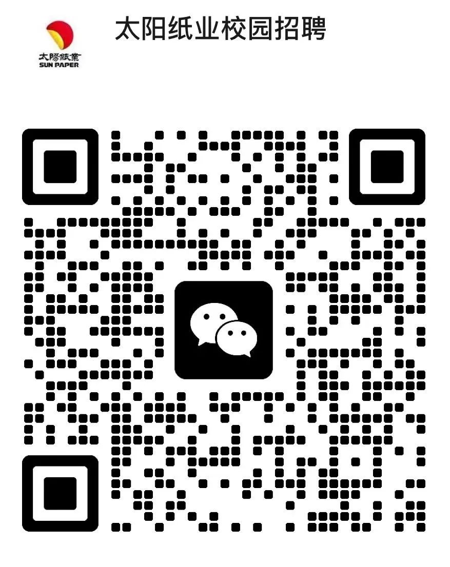 1、扫码添加太阳纸业校园招聘微信,关注“太阳纸业人力资源”微信公众号,查看心仪岗位;