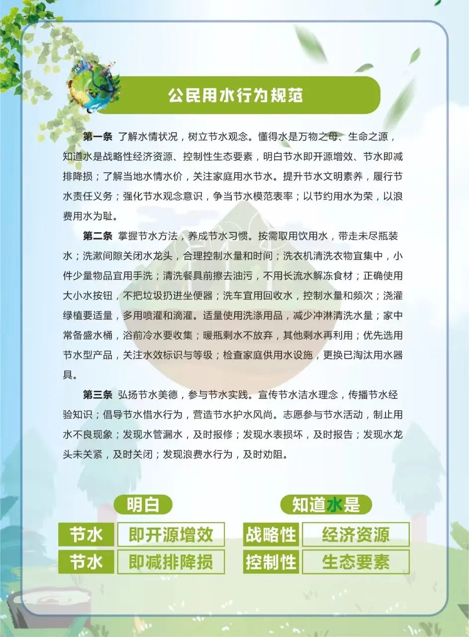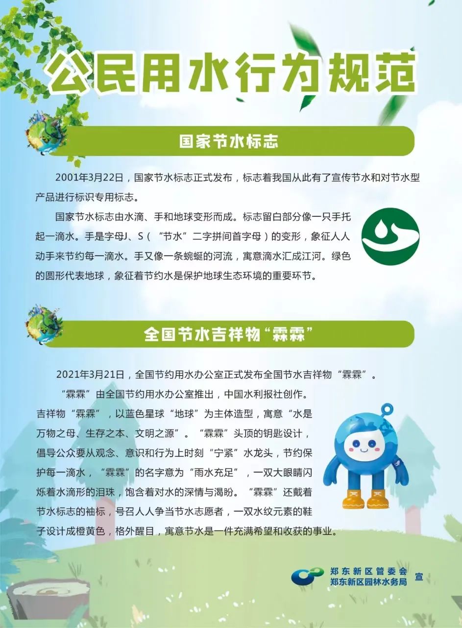2024年3月22日是三十二届“世界水日”,3月22-28日是第三十七届“中国水周”。为增强全民“知水、节水、护水、亲水”环保意识,提高公民用水行为规范,牢固绿水青山就是金山银山理念,郑州国际会展中心开展节水宣传,动员全民,共建节约型社会,共创美好未来。