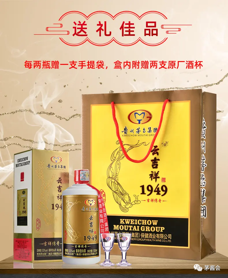 云吉祥1949酱香型白酒是贵州茅台酒厂(集团)保健酒业有限公司推出的酒款,挂的是茅台标,所以基本上不可能拿假酒来糊弄人,这点可以放心,但品质一般都不会有多高,毕竟是集团开发酒,说不好听的就是贴牌酒。