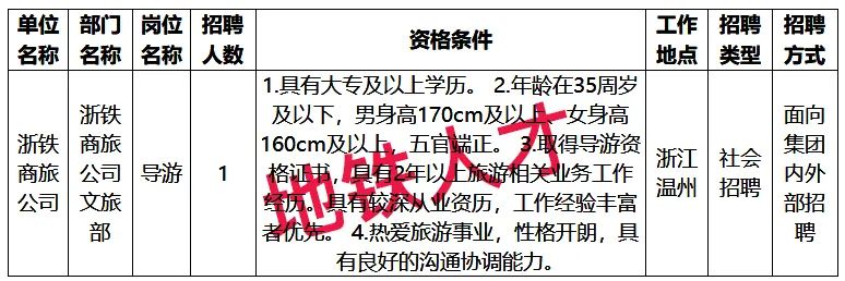 浙江金温铁道开发有限公司招聘公告 (2024年第2期)