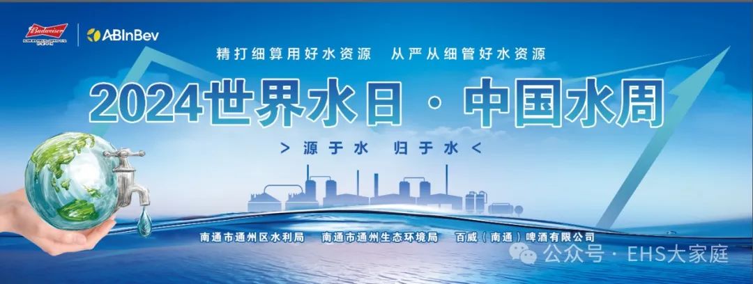 2024年3月22日是第三十二届“世界水日”,3月22—28日是第三十七届“中国水周”。联合国确定2024年“世界水日”主题为“Water for Peace”(以水促和平)。我国纪念2024年“世界水日”“中国水周”活动主题为“精打细算用好水资源,从严从细管好水资源”。百威(南通)啤酒有限公司在中国水周期间鼓励每个人都行动起来。共同努力,以可持续的方式管理这一宝贵资源。