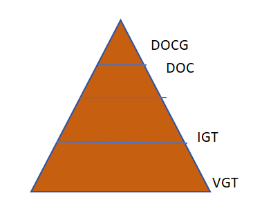 意大利葡萄酒等级划分始于1963年,分为优质葡萄酒与餐酒两个基本等级,优质葡萄酒又细分为DOC、DOCG两个子等级。DOC指法定产区葡萄酒,符合在特定的区域内用指定的葡萄品种、酿造方法和陈年期限标准酿造的酒,才有资格评选DOC级别。评级DOC5年后,可申请评级DOCG。而餐酒又可分为日常餐酒(VGT)、地区餐酒(IGT),地区餐酒对产地、葡萄品种使用限制较DOC宽泛得多,但要求酿造方仍为当地酒商,日常餐酒则不强制要求标注葡萄品种与产区。