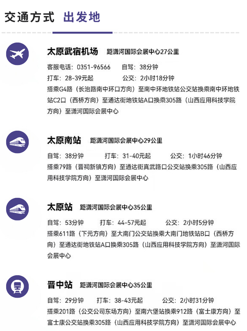 关注展会官方公众号后私信回复所在地区例如:【吕梁市】,即可获得所在地区接驳车负责人联系方式。如有疑问,请添加展会官方客服咨询。