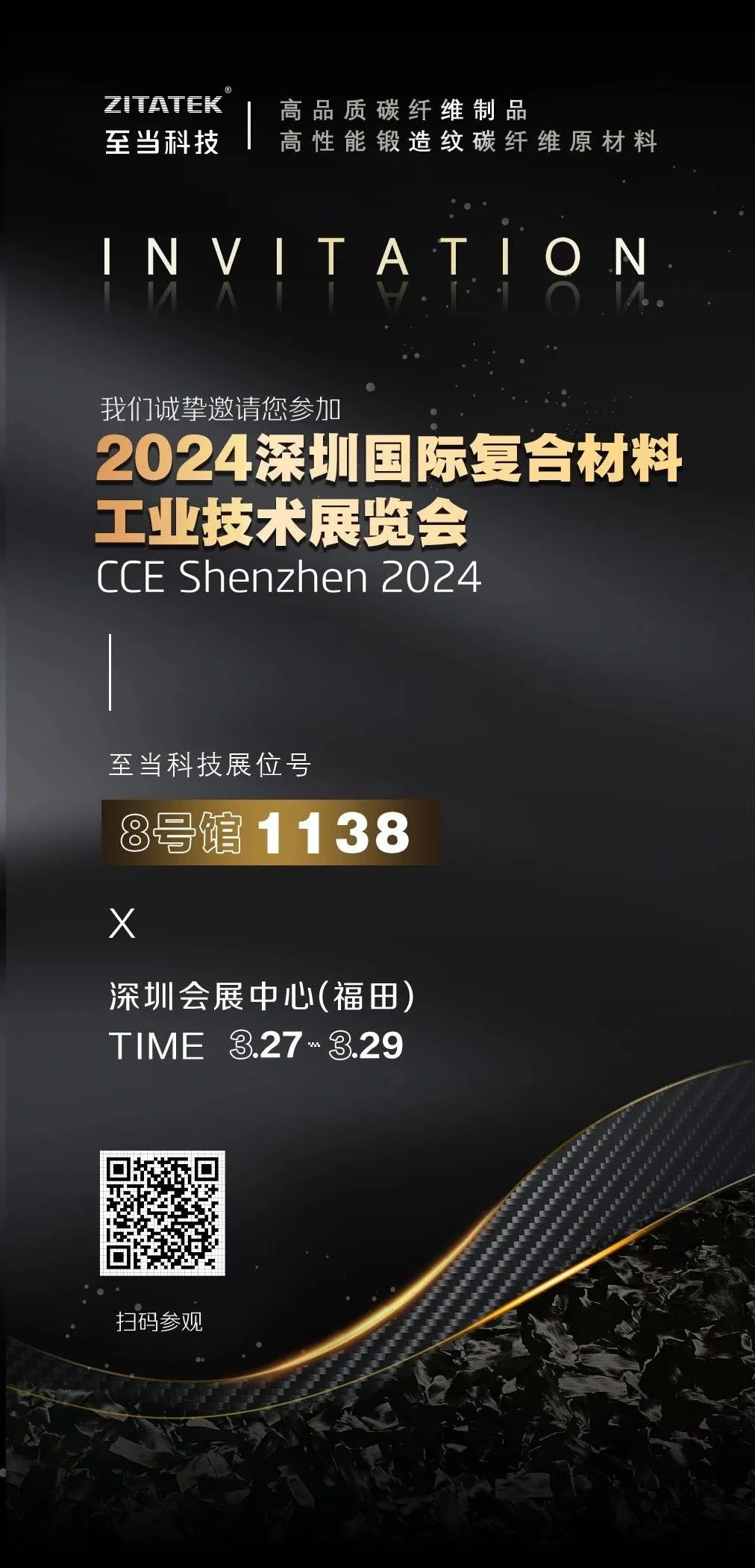 本次展会我们也将展出各类高品质碳纤维热压罐制品、碳纤维模压制品、锻造碳纤维板材等,产品纹理有3K斜纹、锻造纹、回收毡、彩色短锻造纹等等,涵盖汽车、军工、运动器材、电子消费等行业。