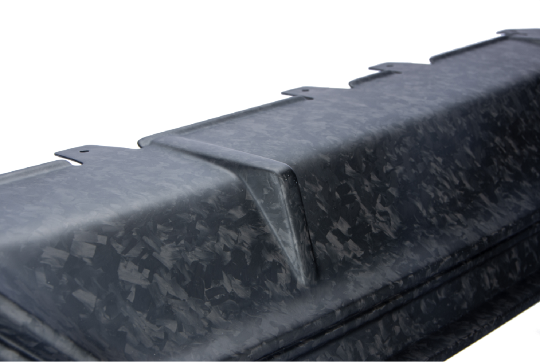 CF-SMC(碳纤维片状模塑料)是以12.5/25mm的短切碳纤维束为增强材料,浸渍各种树脂基体后所形成的高性能薄片状半成品,是一种高效率碳纤维模压成型材料,另外还具有流动性高、铺层时间短、材料损耗低、浸润性高、性能优异、轻量化、独特锻造纹纹理等优异特性;