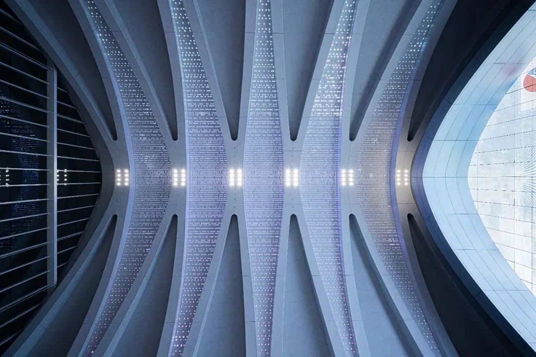 北京建院装饰工程设计有限公司承担了临空国际会展中心的室内设计工作。项目室内设计充分体现科技创新理念,面向未来。在整体设计上注重建筑内外统一的整体调性,风格延续了建筑造型 “羽翼”灵感,以白色为主调,以“翼展长空”为设计理念,充分体现科技与技术之美。