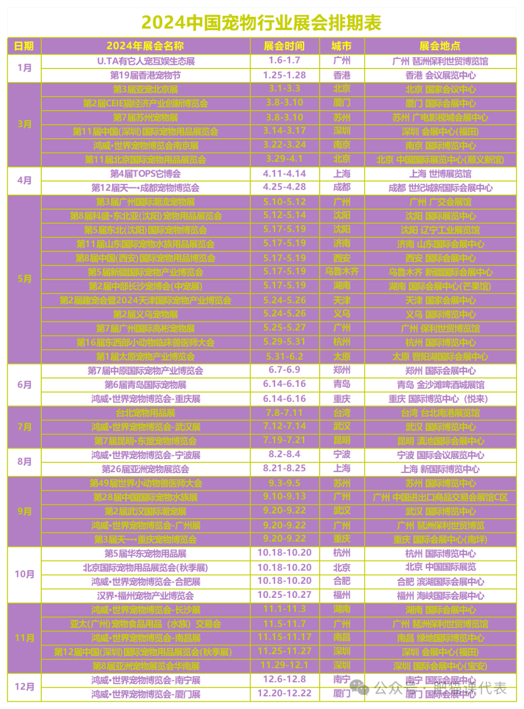 截止至2024/3/21,国内今年预计举办46场宠物展会,宝们快接住这泼天的富贵!