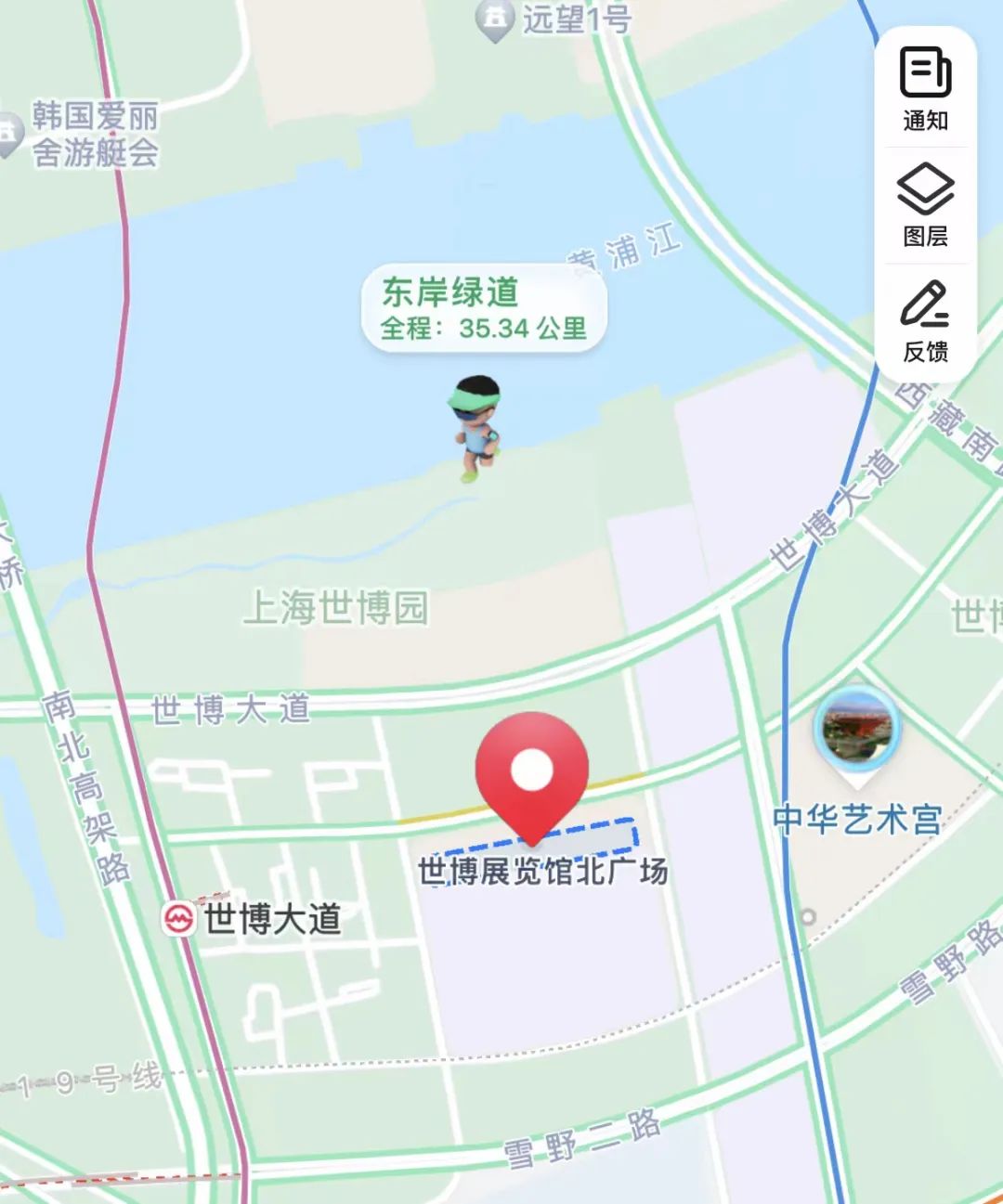地铁13号「世博大道」站,1号口出站 ,11分钟至展馆北入口(博成路850号)