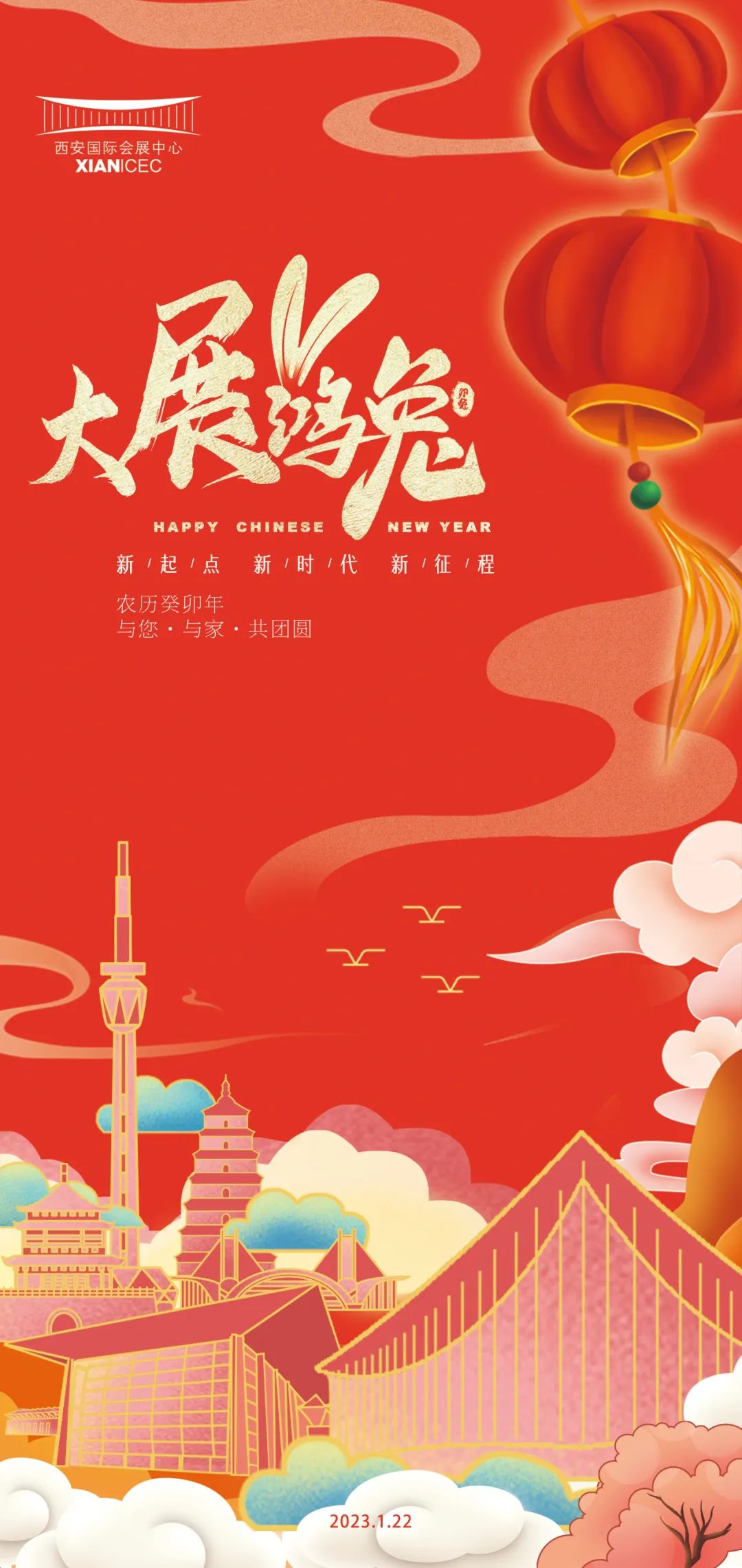 在新的一年里,西安国际会展中心祝愿大家,新春大吉,万事胜意,万般熙攘化清风朗月,四方梦想皆如愿以偿,谨贺新年,岁岁安愉。