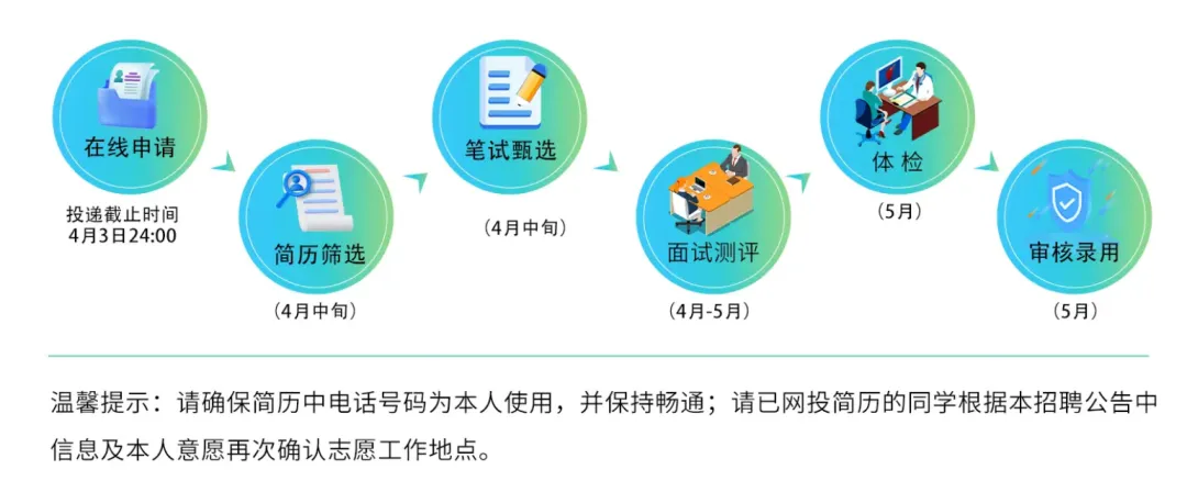2、应聘人员须保持手机和电子邮箱的畅通,我们会通过短信、电话和邮件送达方式将笔试、面试及录用信息通知到应聘者本人(注:对于在各招聘流程中落选人员,有可能无法一一通知到本人,敬请谅解)。