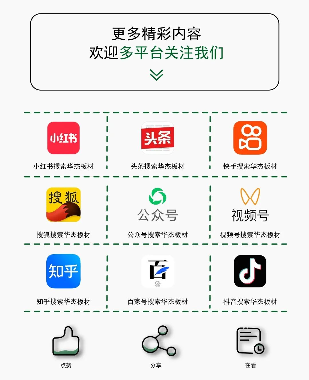 此外,华杰抗变形立芯板还可以提供PET、准分子、油漆、实木烤漆等多种饰面选择,满足消费者的个性化需求。