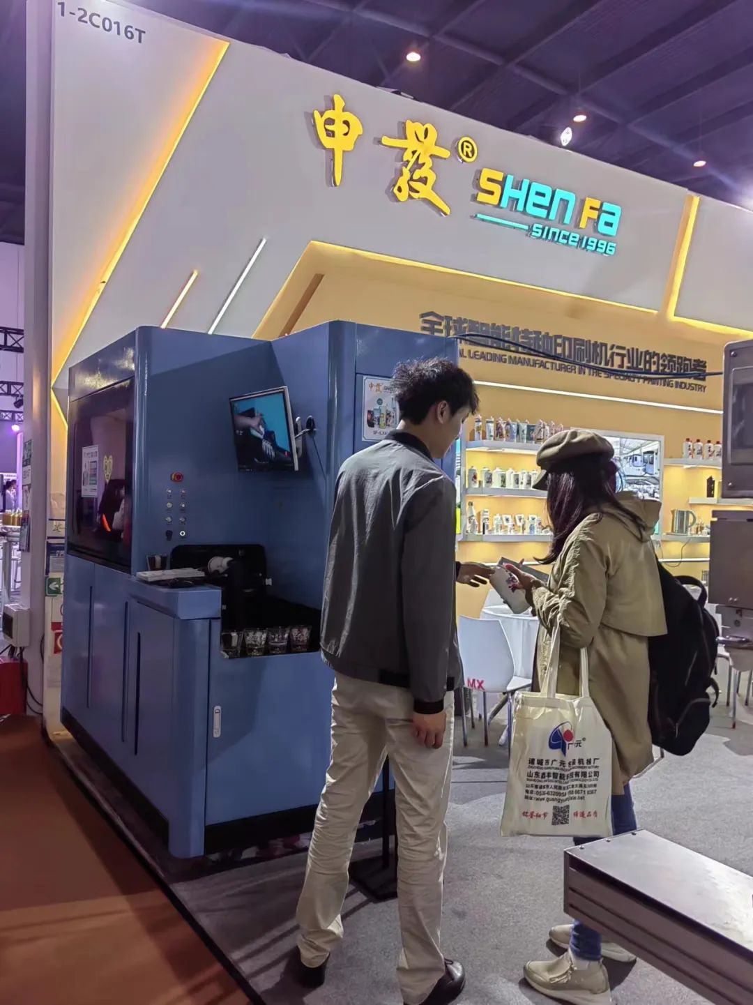 在【1-2C016T】展位上,我们主要推荐的特种印刷设备有:自动多色伺服多台联机包装印刷生产线、全彩螺旋数码直印机以及四色伺服移印机等。这些现场展品以独特行业创新技术,致力于为客户提供自动化、智能化、多功能的印刷设备、技术与服务解决方案,解客户之所急,供客户之所需。