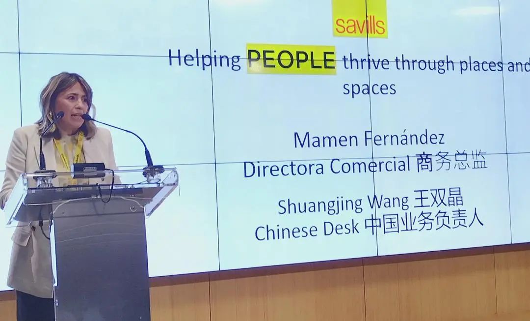 会上,Savills销售总监Mamen Fernández以“西班牙外商投资环境和政策解读”为题发表了演讲。