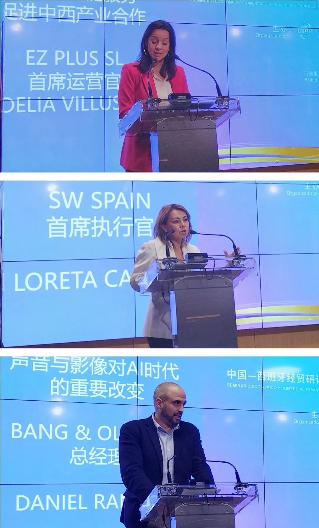 三位分别来自EZ PLUS SL、SW SPAIN、BANG & OLUFSEN的企业代表,各自以“做好供应链服务,促进中西产业合作”、“供应链的投资转型”、“声音与影像对AI时代的重要改变”为题发表了演讲,并参与了随后举办的签约仪式。