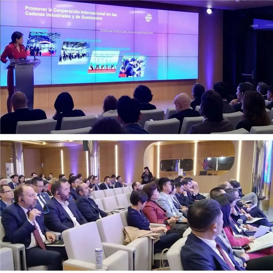 中国贸促会副会长陈建安、中国驻西班牙大使姚敬等出席活动并致辞,链博会承办单位中国国际展览中心集团张瑛平经理作推介讲话,近100位中西两国企业代表出席会议。