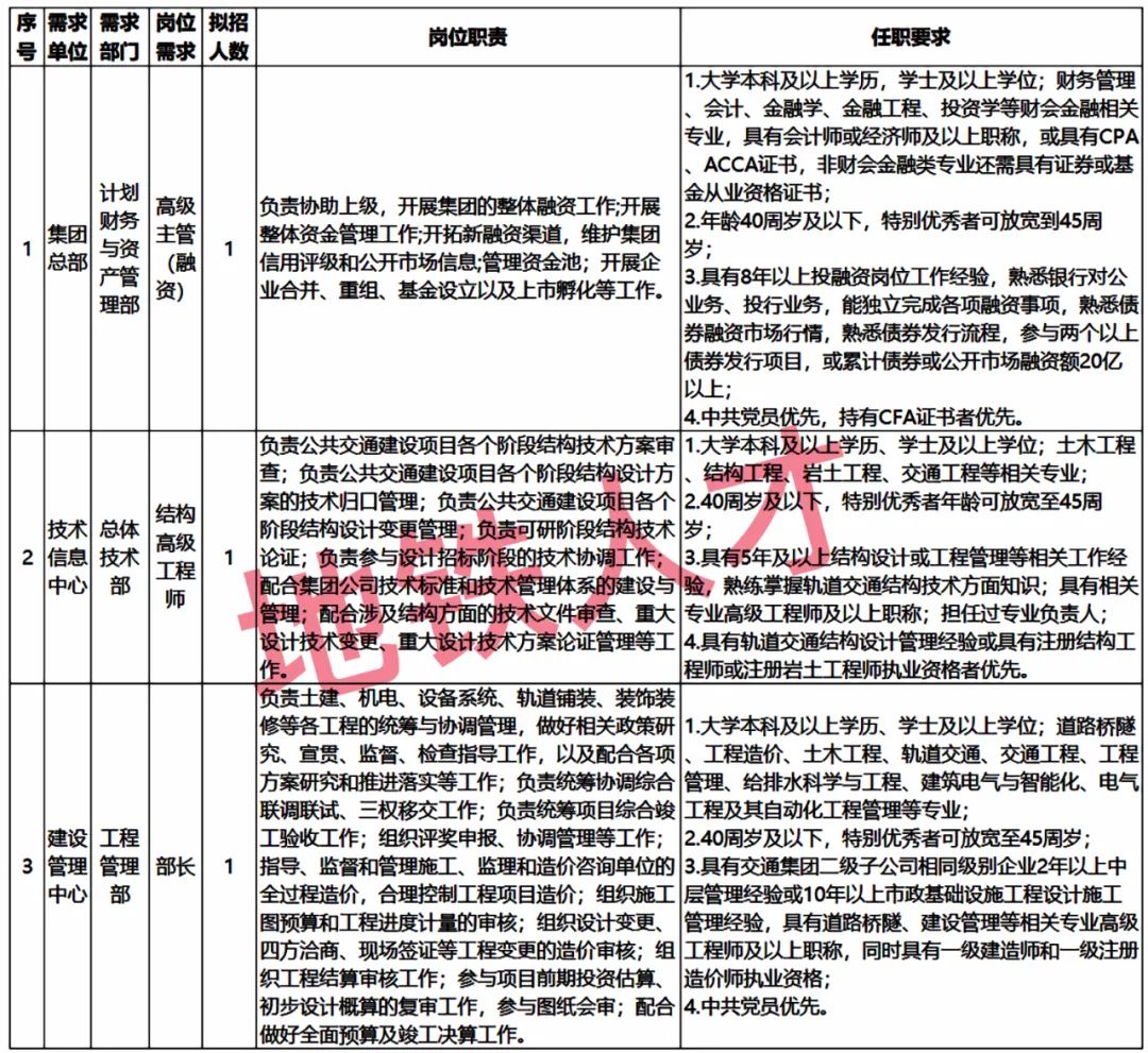5、社招!又一轨道交通集团2024年招聘公告(3.29)