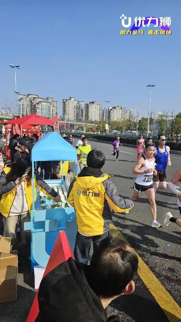 (优力狮助阵马拉松 赛道补给站现场)