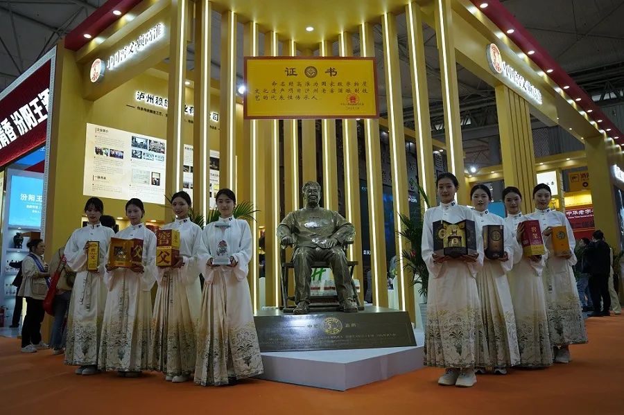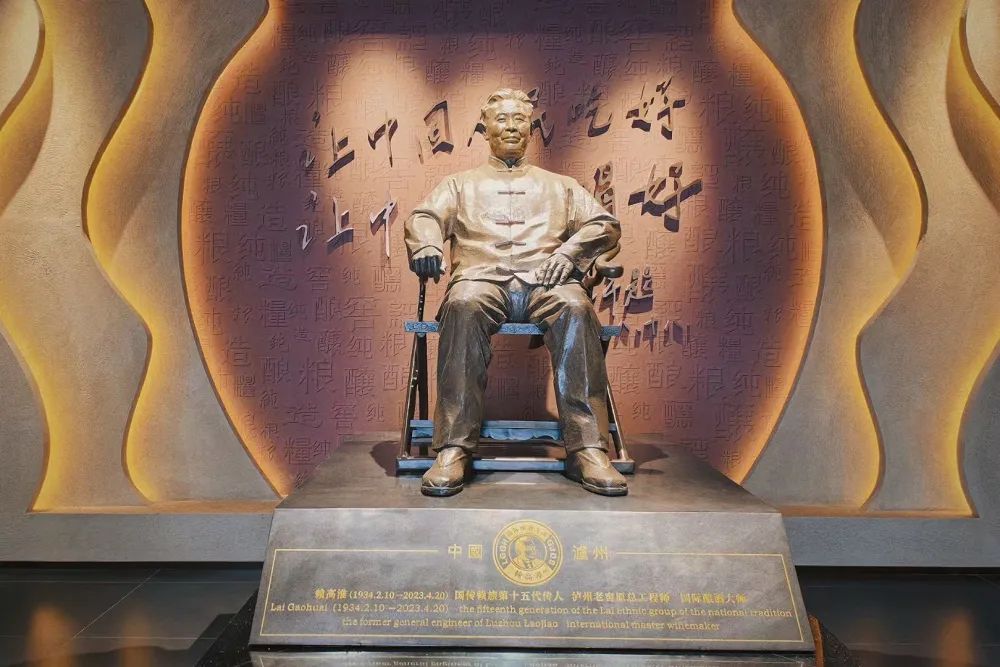 一走进展位,浓厚的文化氛围扑面而来。巨型中国窖父、国际酿酒大师、享受国务院特殊津贴的赖高淮铜像矗立在前,室内则融入了独特的“窖”文化元素,让参观者仿佛置身于美酒与文化的交融之中。这里,不仅是美酒的展示,更是对中国浓香型白酒高质量发展历程的清晰回顾。