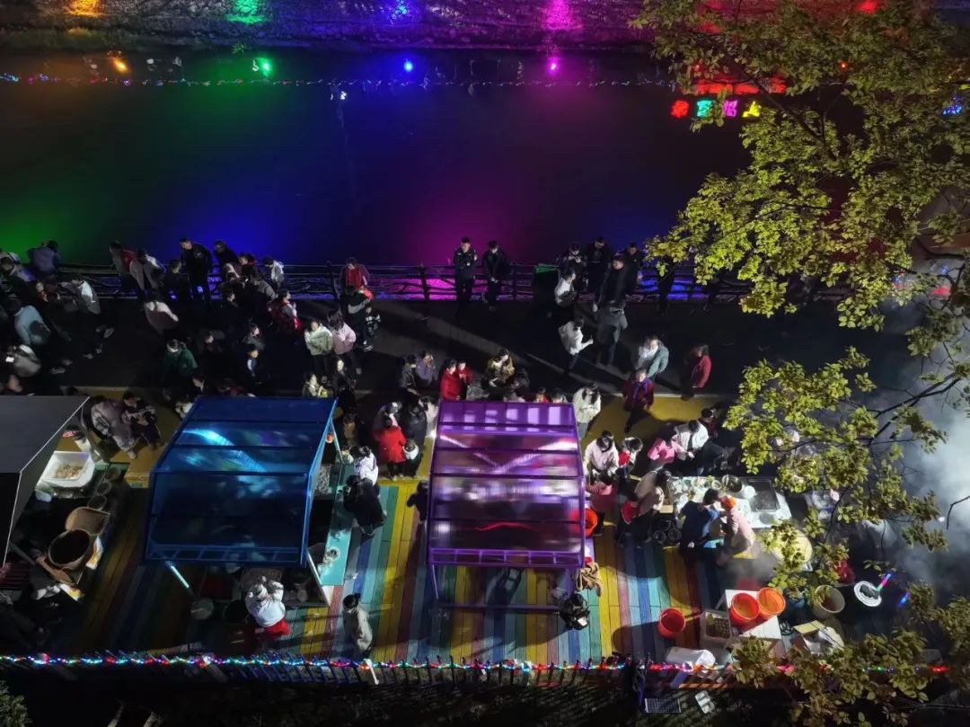 游客们喝着啤酒,吃着烧烤,悠闲畅聊,尽情享受舌尖上的饕餮盛宴。