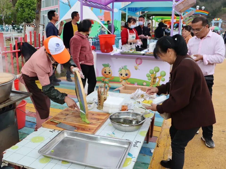 不少摊位前陆续聚集起了寻味而来的游客,数种安远特色美食集中亮相,各式小吃不光颜值高,味道也是一绝。