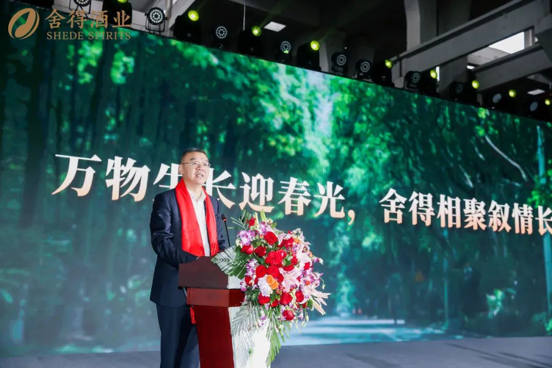舍得酒业董事长蒲吉洲在《春酿如金老酒天成 品味舍得共敬人生》的主题讲话中,以老酒致敬历史、以老酒致敬时代,以老酒致敬未来。他表示,舍得酒业将继续坚持极致的产品主义、深度的消费者体验,为成为文化领先、生态可持续、创新驱动的世界一流白酒企业而奋斗。
