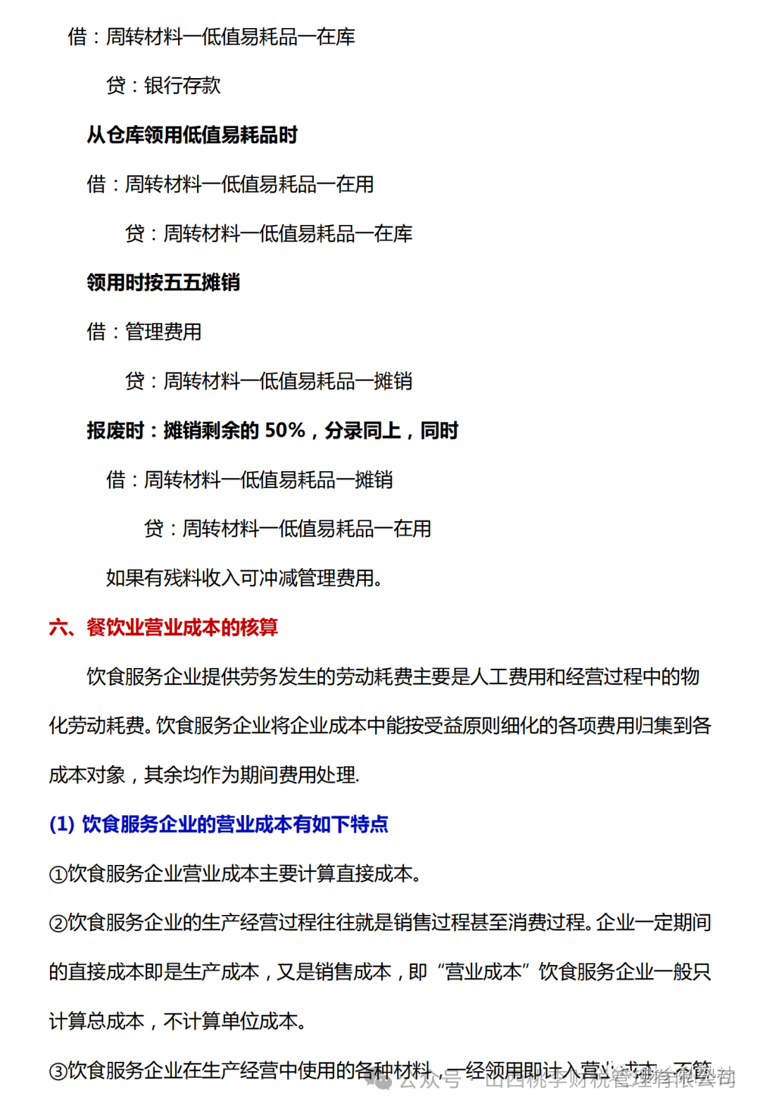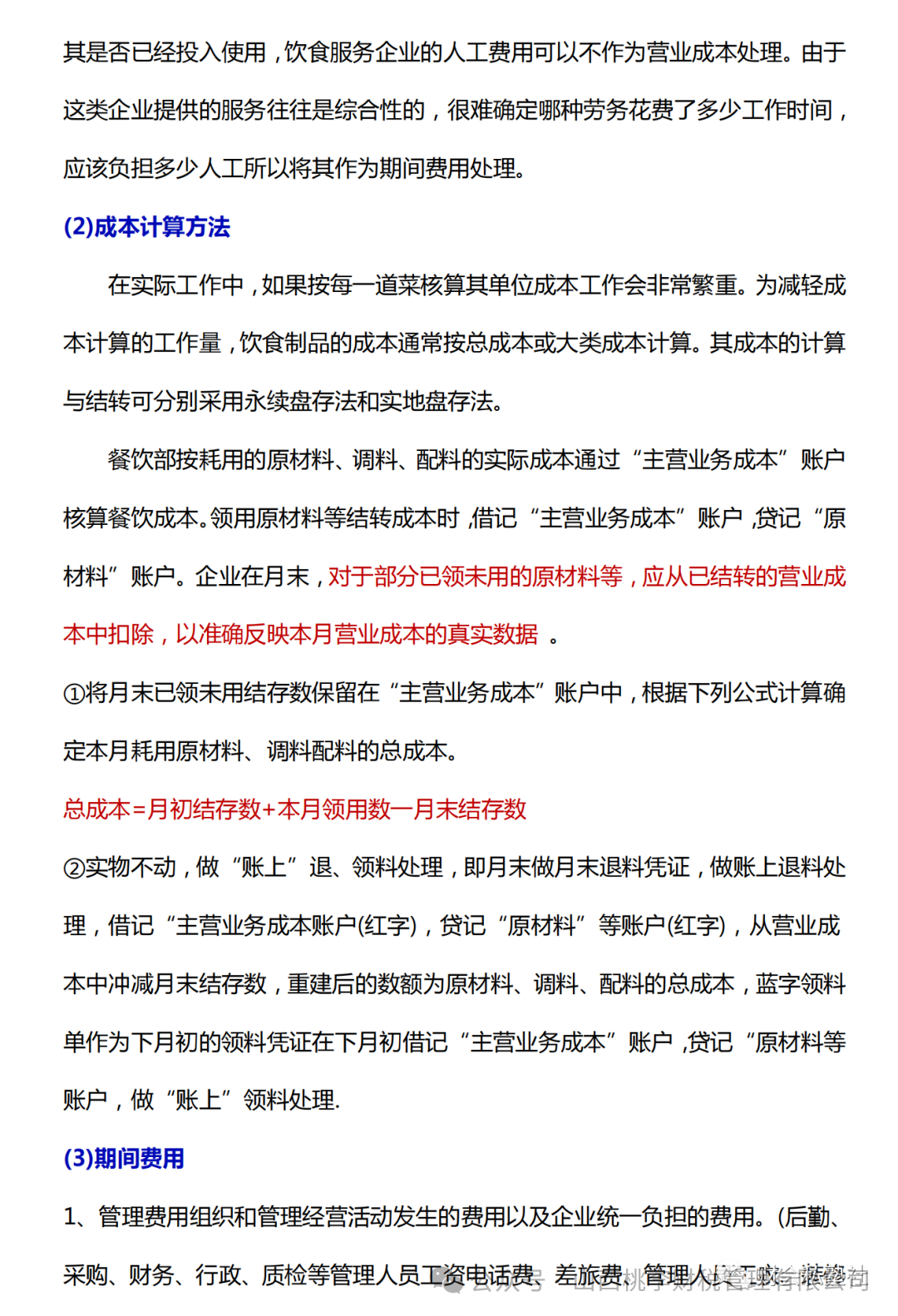 餐饮业营业成本核算