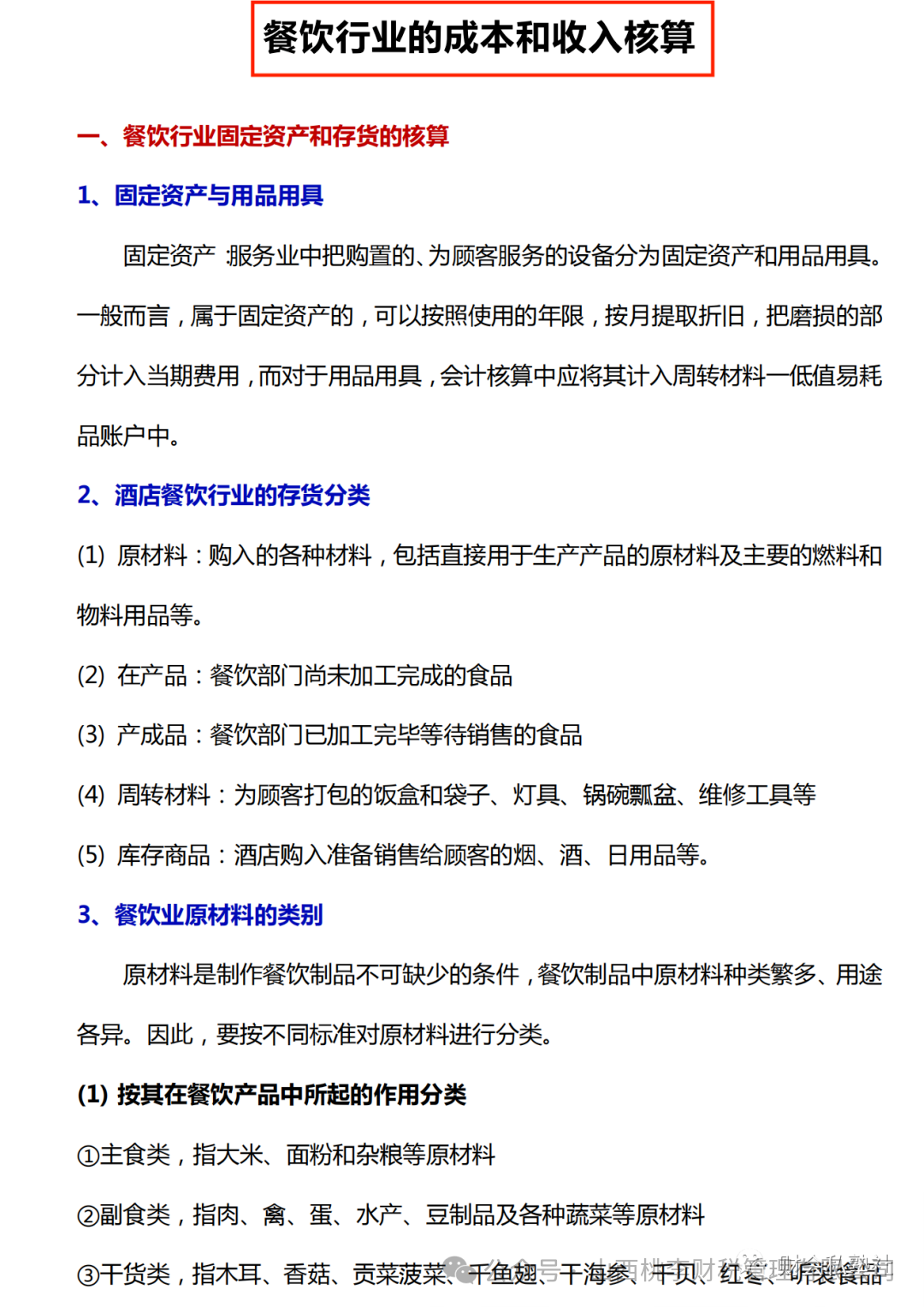 餐饮行业的成本和收入核算