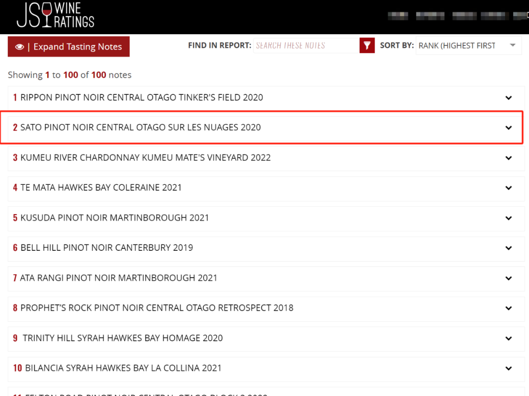 作为新西兰的顶级葡萄酒,国际知名酒评家James Suckling在上月发布了2023年新西兰醉佳100款酒榜单,Sato黑皮诺排第2,超越另三家膜拜酒:Bellhill,Kusuda和Felton Road。