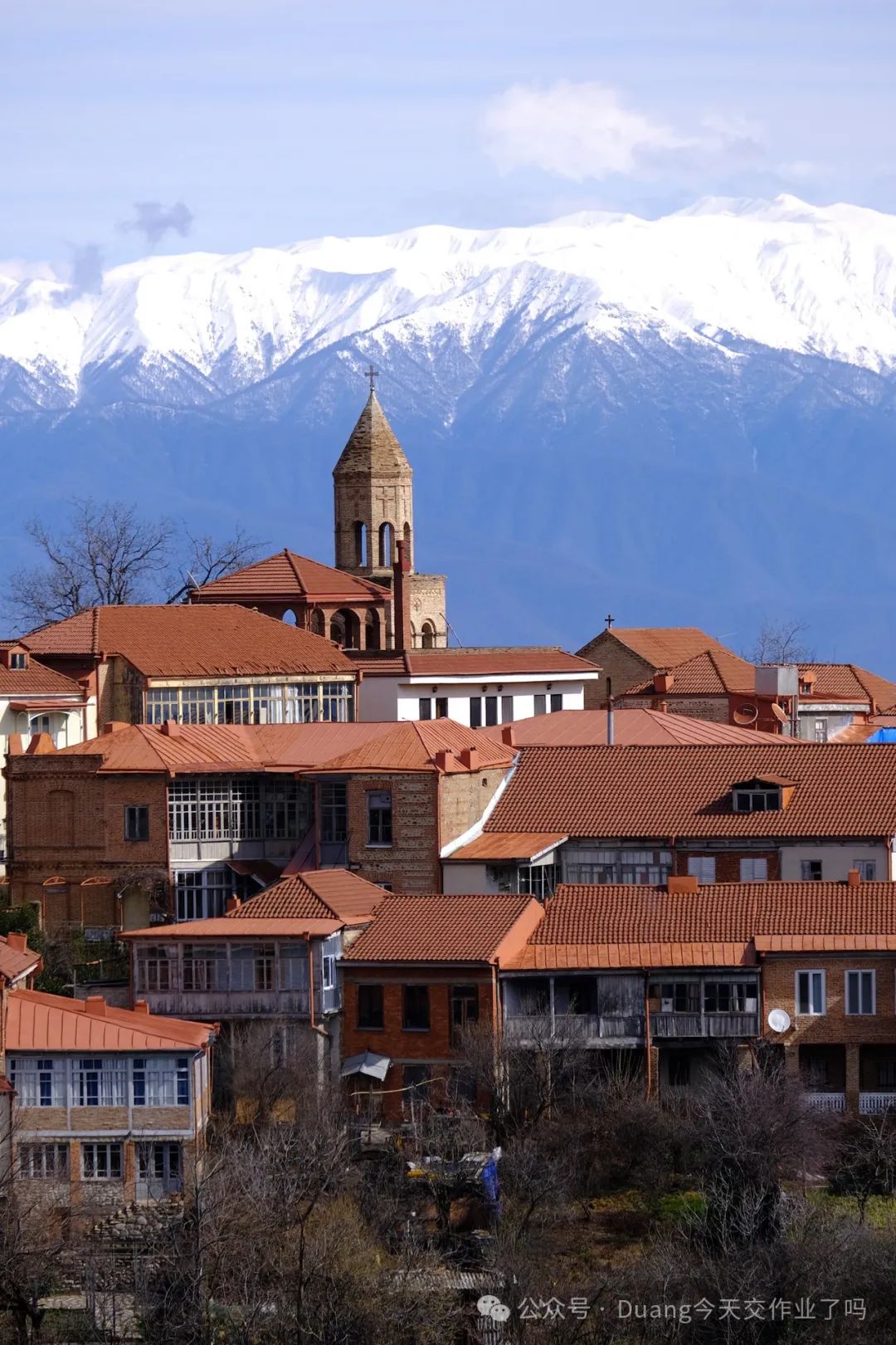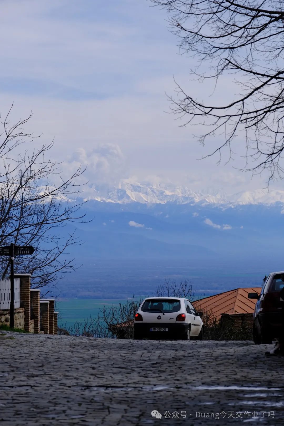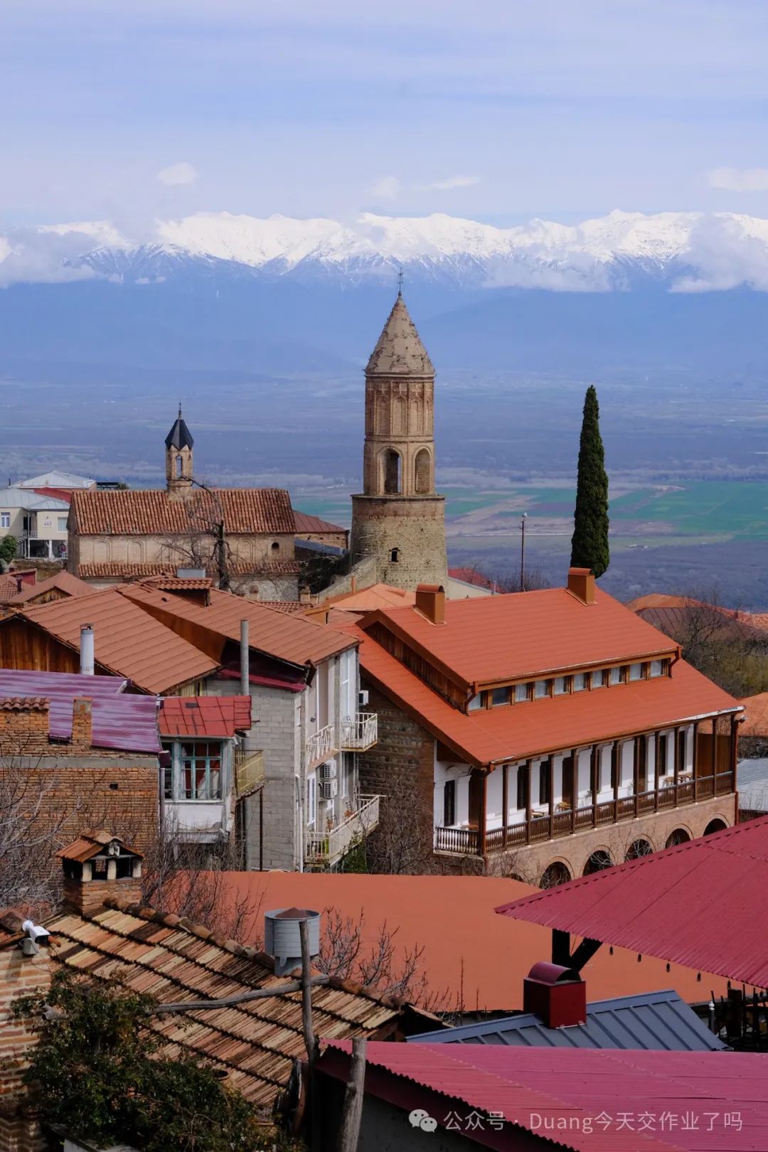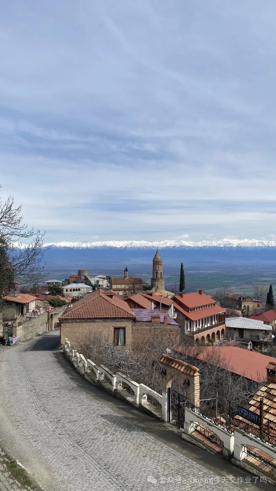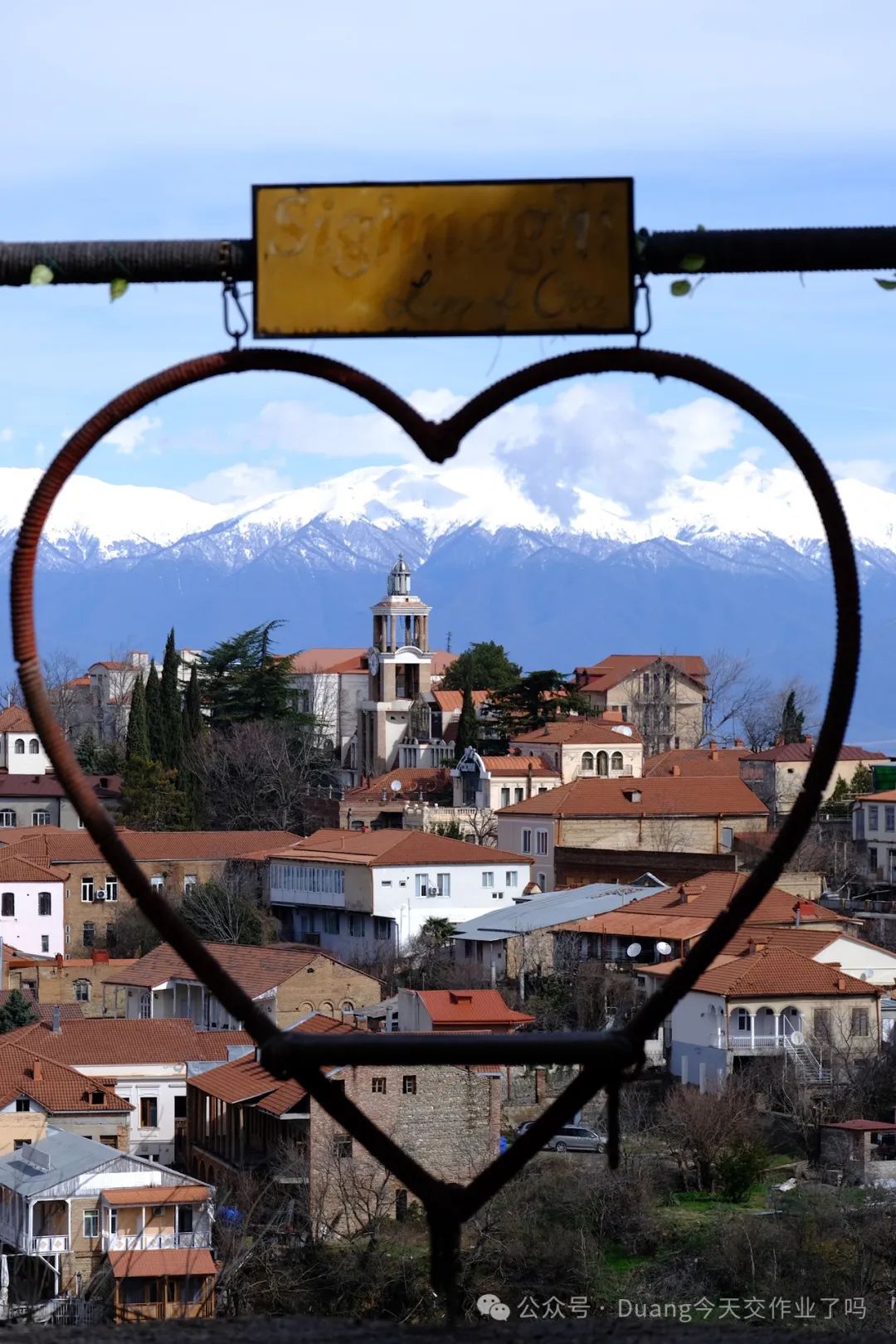 这里几乎家家户户都自己产酒,喜欢红酒的来到格鲁吉亚不可错过。西格纳吉很小,整个小镇1-2个小时就能逛完,可以选择当天来回,不赶时间的话建议可以住一晚,好好感受这里的慢生活。在进入小镇之前会路过一个观景台,可以俯瞰小镇全景,远处雪山就是高加索山脉。Sighnaghi Fountain,天冷喷泉没有开。旁边有一些观光车可以带着游览整个小镇。小镇市政厅,据说是24小时开放,可以领结婚证。(单身狗无法证实信息准确性)市政厅旁边的街心公园天气好的时候有老爷爷弹唱卖唱。市政厅旁边的阶梯往上走,是西格纳吉博物馆,票价20拉里。两层楼就4个展厅,一楼是出土的文物和风情民俗介绍,很小一点,最大的展厅是二楼的画,还有一个展厅是放了广岛原子弹爆炸的知识普及,十分敷衍,没有看头,不推荐!往前走有一家Cafe Medea,可以坐在观景位点一份红酒冰激淋,远眺高加索山脉和Signagi St. George basilica,店主知道当天是我生日还特意给我点的蛋糕上点了根蜡烛,一整个大感动。Signagi St. George basilica,当天没有开,只在外面看了一下。Sighnaghi Wall,可以爬上去感受下西格纳吉的长城烽火台。附近有好几家餐厅,绝对景观位,可以去感受一下,但味道不做评价。去了一家餐厅,Okro's Wine Restaurant & Cellar,自家产酒,跟店主说喜欢sweet口感的红酒,店主拿了几款出来尝,然而本人对酒一窍不通,实在享受不来,尝了几口就感觉上头,最后点了个grape lemonade。一个人点了面包+蘑菇汤+烤猪肉,面包泡汤,味道不咸(不咸已经是我对格鲁吉亚餐最高的评价了),但不建议点猪肉,非常硬且柴。小镇街道上有很多小店,卖一些工艺品,跟第比利斯的干桥市场里卖的东西都差不多。还有卖鲜榨石榴汁的,摊头就摆在路边,5拉里一杯,小贵。总的来说,如果时间不紧张,是一个非常适合留一天慢慢逛的地方,也许在第二天早上可以看到满天红的朝霞哦~