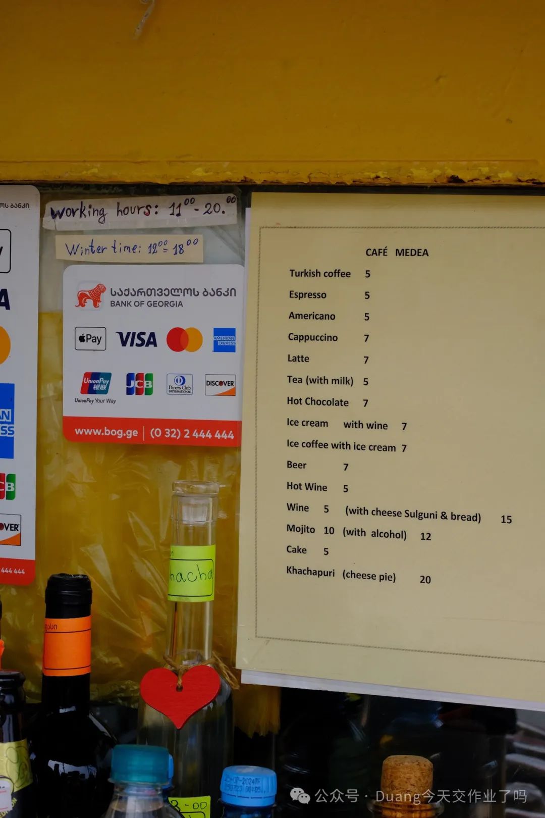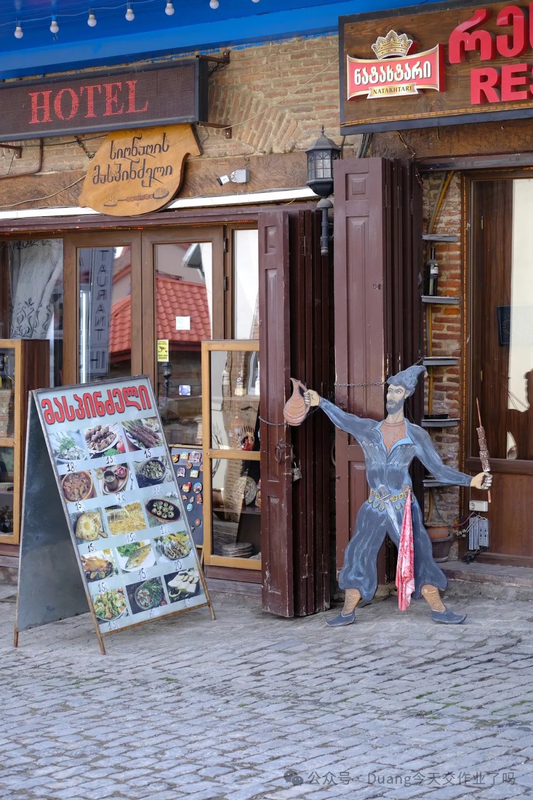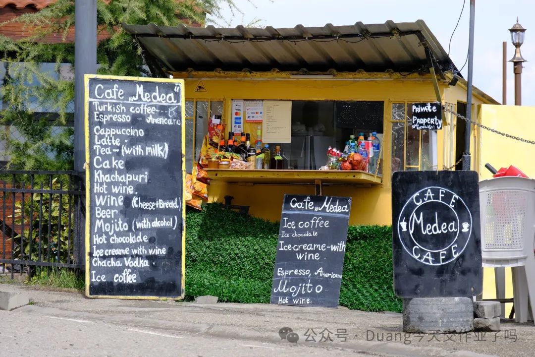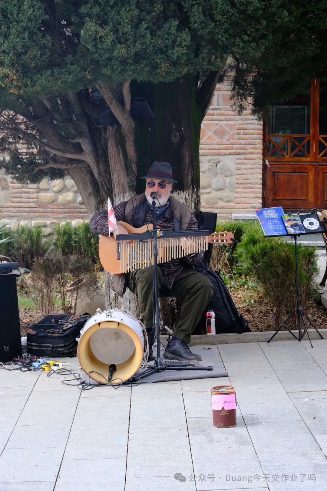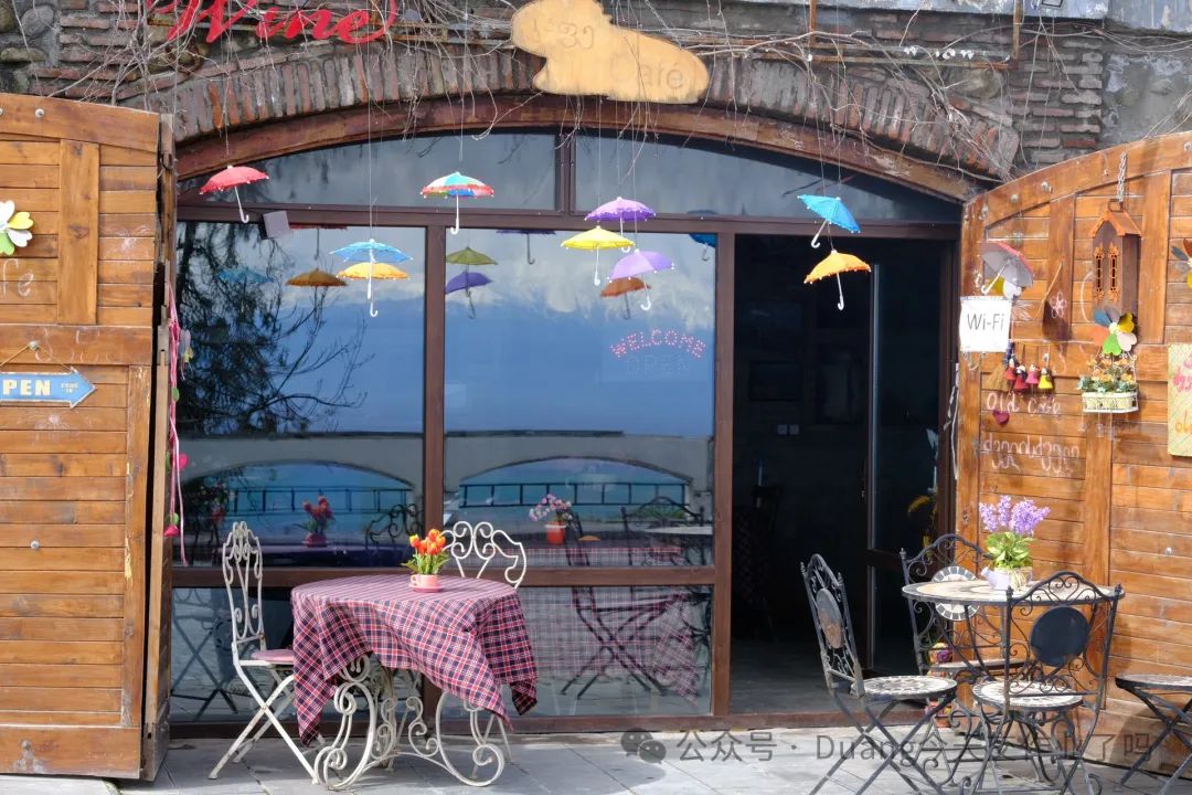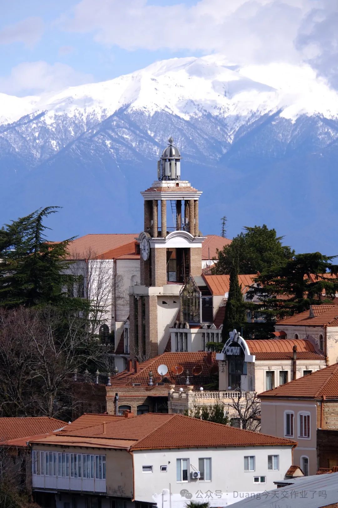 这里几乎家家户户都自己产酒,喜欢红酒的来到格鲁吉亚不可错过。西格纳吉很小,整个小镇1-2个小时就能逛完,可以选择当天来回,不赶时间的话建议可以住一晚,好好感受这里的慢生活。在进入小镇之前会路过一个观景台,可以俯瞰小镇全景,远处雪山就是高加索山脉。Sighnaghi Fountain,天冷喷泉没有开。旁边有一些观光车可以带着游览整个小镇。小镇市政厅,据说是24小时开放,可以领结婚证。(单身狗无法证实信息准确性)市政厅旁边的街心公园天气好的时候有老爷爷弹唱卖唱。市政厅旁边的阶梯往上走,是西格纳吉博物馆,票价20拉里。两层楼就4个展厅,一楼是出土的文物和风情民俗介绍,很小一点,最大的展厅是二楼的画,还有一个展厅是放了广岛原子弹爆炸的知识普及,十分敷衍,没有看头,不推荐!往前走有一家Cafe Medea,可以坐在观景位点一份红酒冰激淋,远眺高加索山脉和Signagi St. George basilica,店主知道当天是我生日还特意给我点的蛋糕上点了根蜡烛,一整个大感动。Signagi St. George basilica,当天没有开,只在外面看了一下。Sighnaghi Wall,可以爬上去感受下西格纳吉的长城烽火台。附近有好几家餐厅,绝对景观位,可以去感受一下,但味道不做评价。去了一家餐厅,Okro's Wine Restaurant & Cellar,自家产酒,跟店主说喜欢sweet口感的红酒,店主拿了几款出来尝,然而本人对酒一窍不通,实在享受不来,尝了几口就感觉上头,最后点了个grape lemonade。一个人点了面包+蘑菇汤+烤猪肉,面包泡汤,味道不咸(不咸已经是我对格鲁吉亚餐最高的评价了),但不建议点猪肉,非常硬且柴。小镇街道上有很多小店,卖一些工艺品,跟第比利斯的干桥市场里卖的东西都差不多。还有卖鲜榨石榴汁的,摊头就摆在路边,5拉里一杯,小贵。总的来说,如果时间不紧张,是一个非常适合留一天慢慢逛的地方,也许在第二天早上可以看到满天红的朝霞哦~