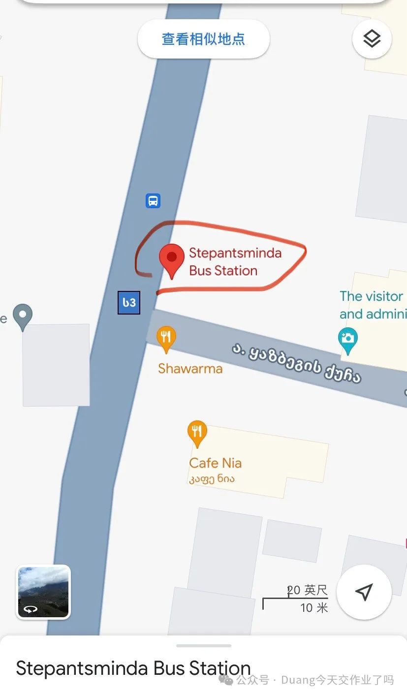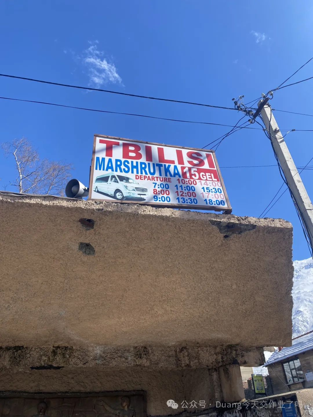 从卡兹别克回第比利斯,定位“Stepantsminda Bus Station”,车站不太起眼,有一个牌子写着回第比利斯的发车时间,全程3.5小时,票价15拉里。