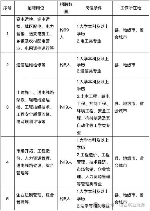 根据国家电网公司统一安排,国网山西省电力公司2024年高校毕业生招聘第二批考试,主要面向电工类、通信类、其他工学类、管理类、其他类专业毕业生。