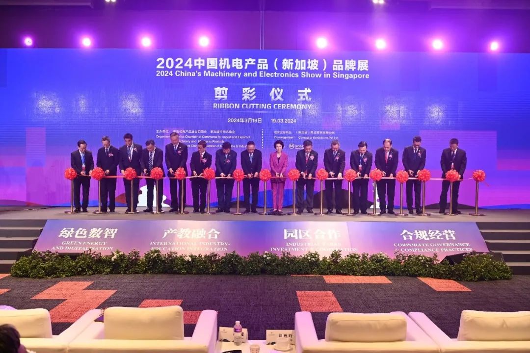 中国机电商会常务副会长兼专家委员会主任委员郑超主持开幕式。中国商务部副部长兼国际贸易谈判副代表凌激发表视频致辞,新加坡贸易及工业部兼文化、社区及青年部政务部长刘燕玲,中国驻新加坡大使馆临时代办朱憬,中国机电商会会长张钰晶,新加坡中华总商会会长高泉庆,中国机电商会企业副会长、中国交通建设集团有限公司副总经理陈重等嘉宾出席并致辞。中国机电商会专家委员会高级顾问、商务部原副部长陈健,中国教育国际交流协会会长、教育部原副部长刘利民发表主旨演讲。