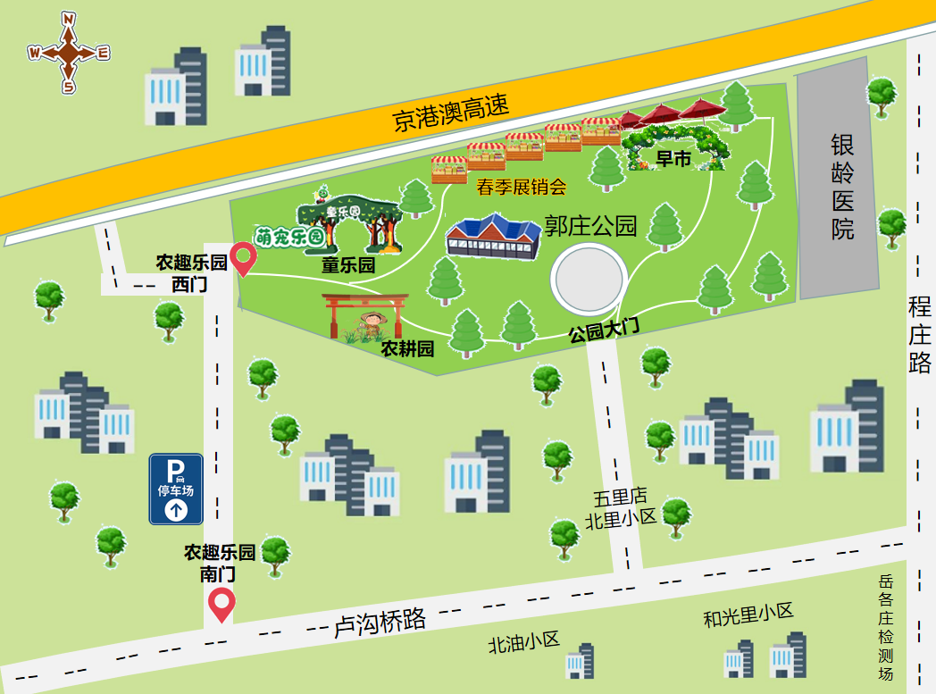 地铁路线:地铁14号线郭庄子站C出口出,向西50米过地下通道再往东约500米即到郭庄子公园北门。